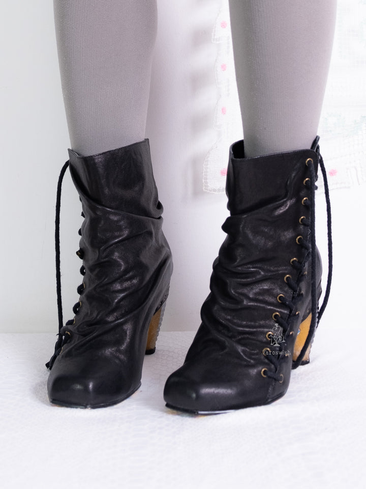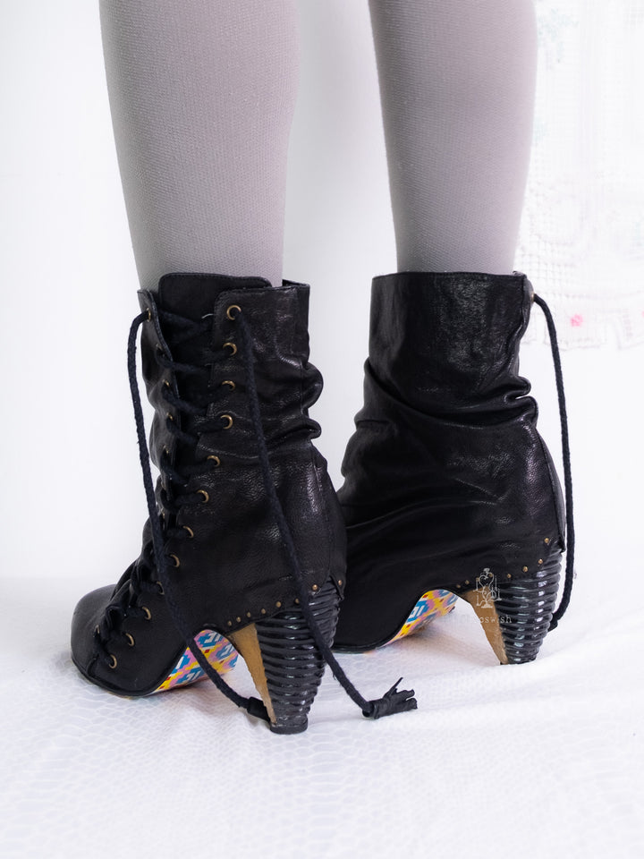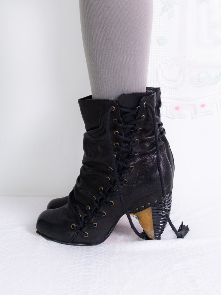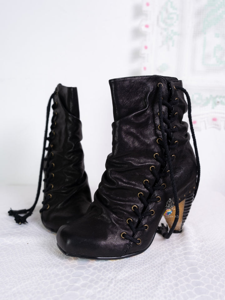 IRREGULAR CHOICE BLACK LACE-UP SLOUCHY ANKLE BOOTS - EU38