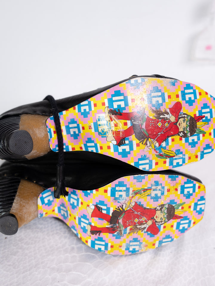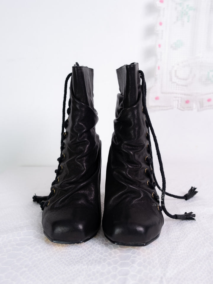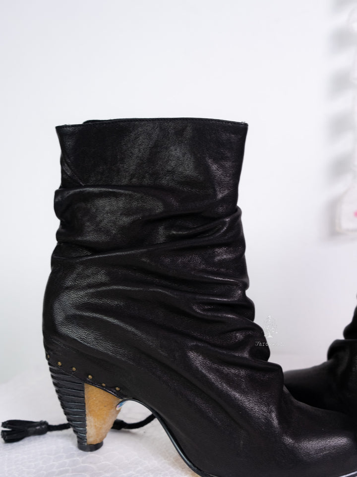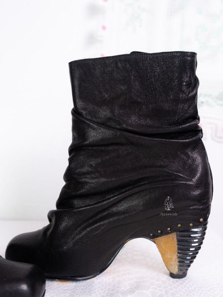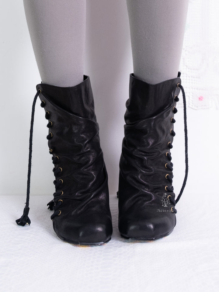 IRREGULAR CHOICE BLACK LACE-UP SLOUCHY ANKLE BOOTS - EU38