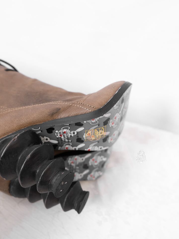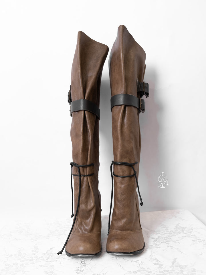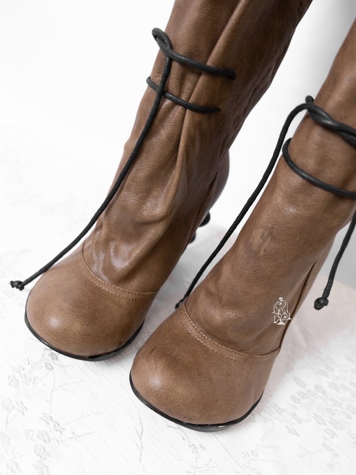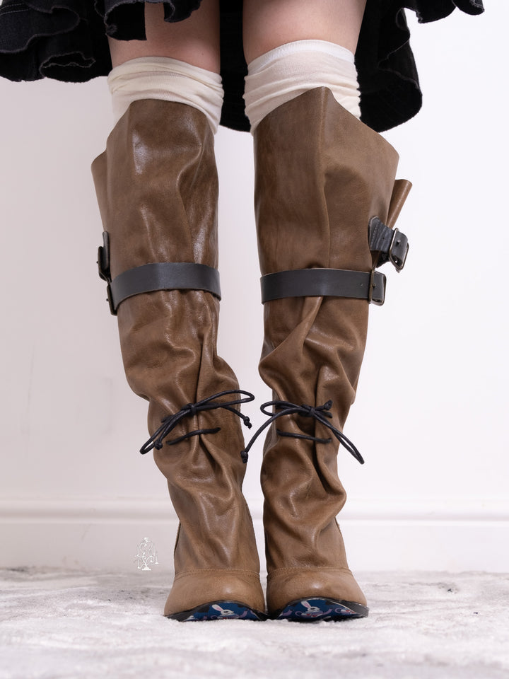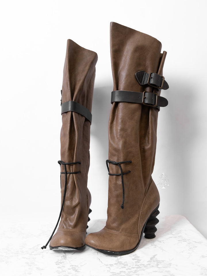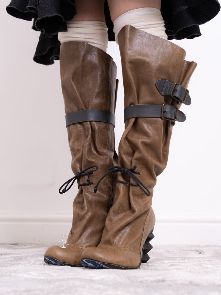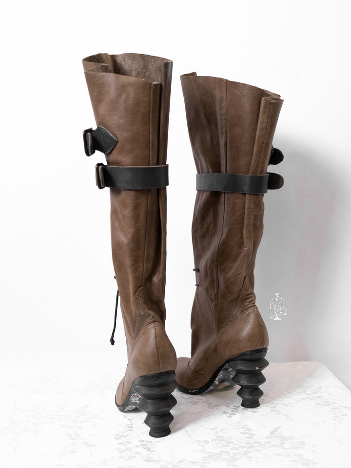 EU36 KHAKI SCULPTURAL-HEEL BUCKLE TALL BOOTS