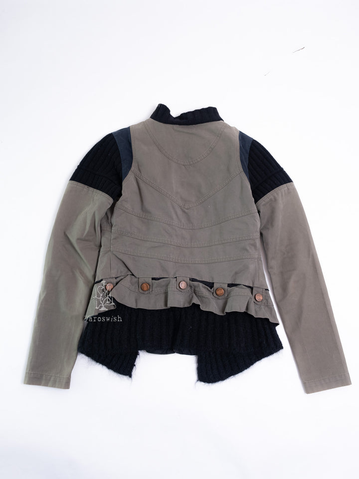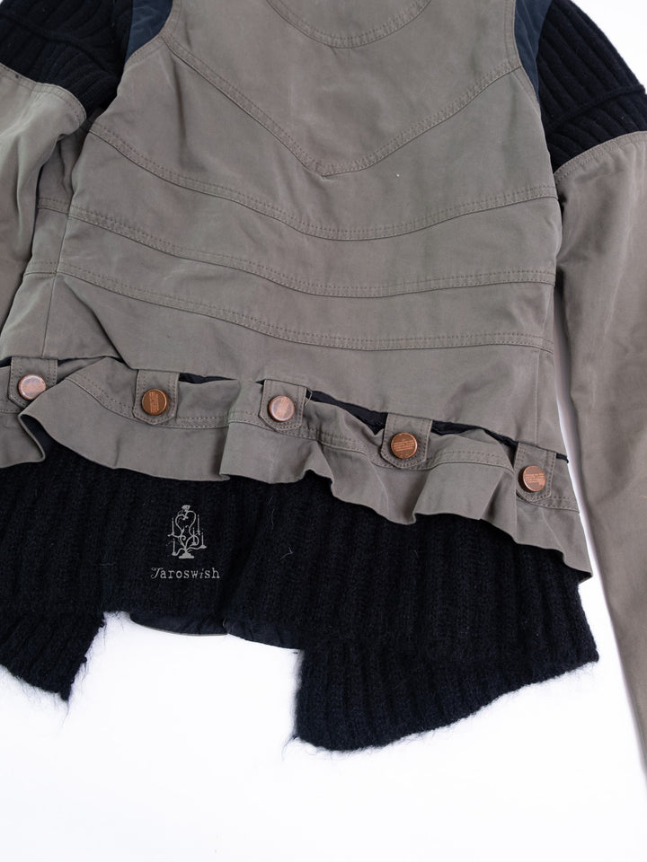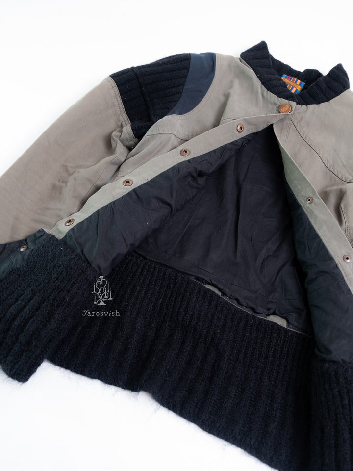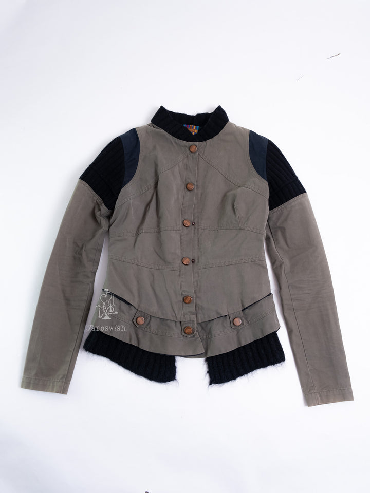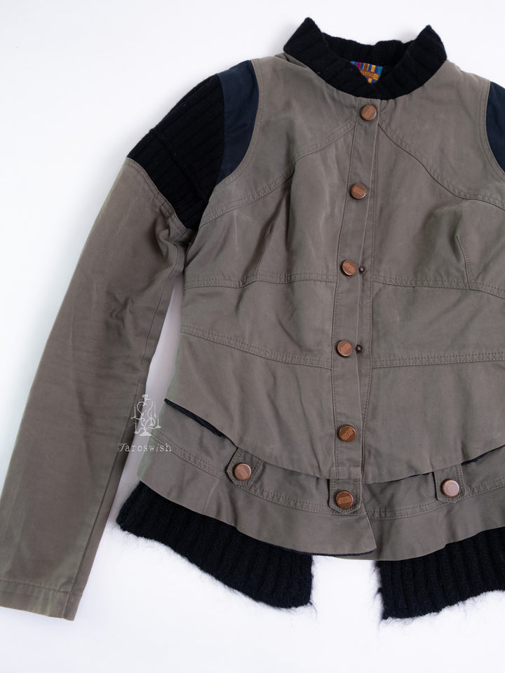 KHAKI MILITARY JACKET WITH KNIT PANEL DETAILS