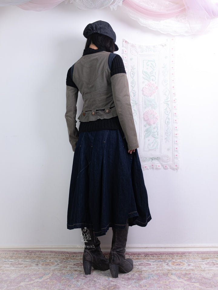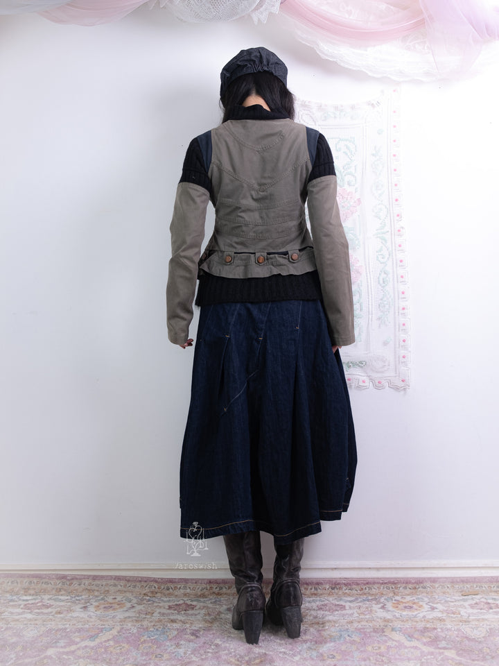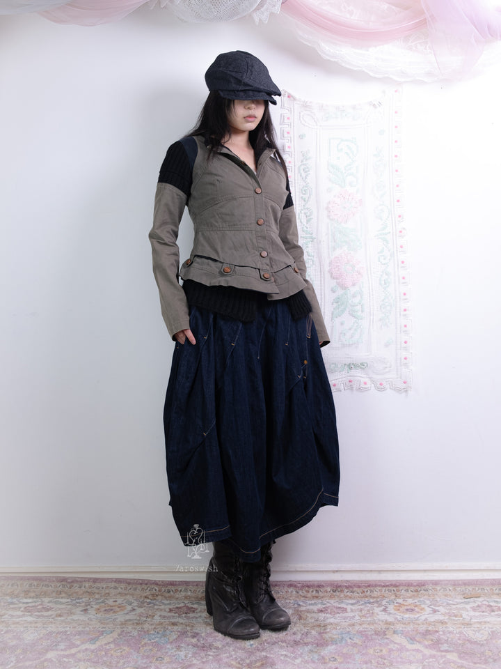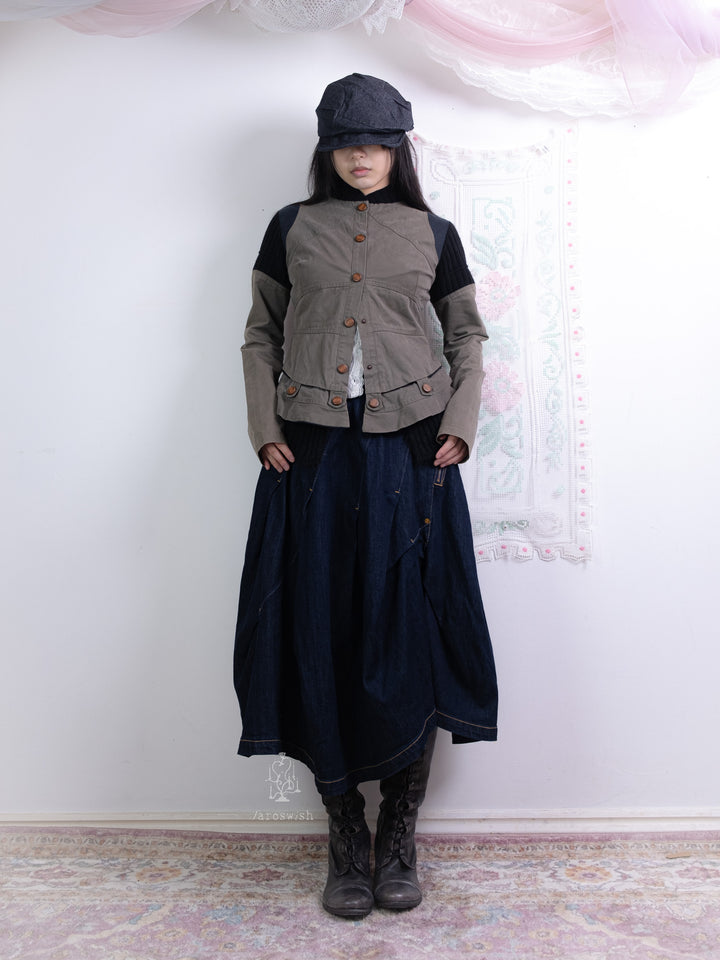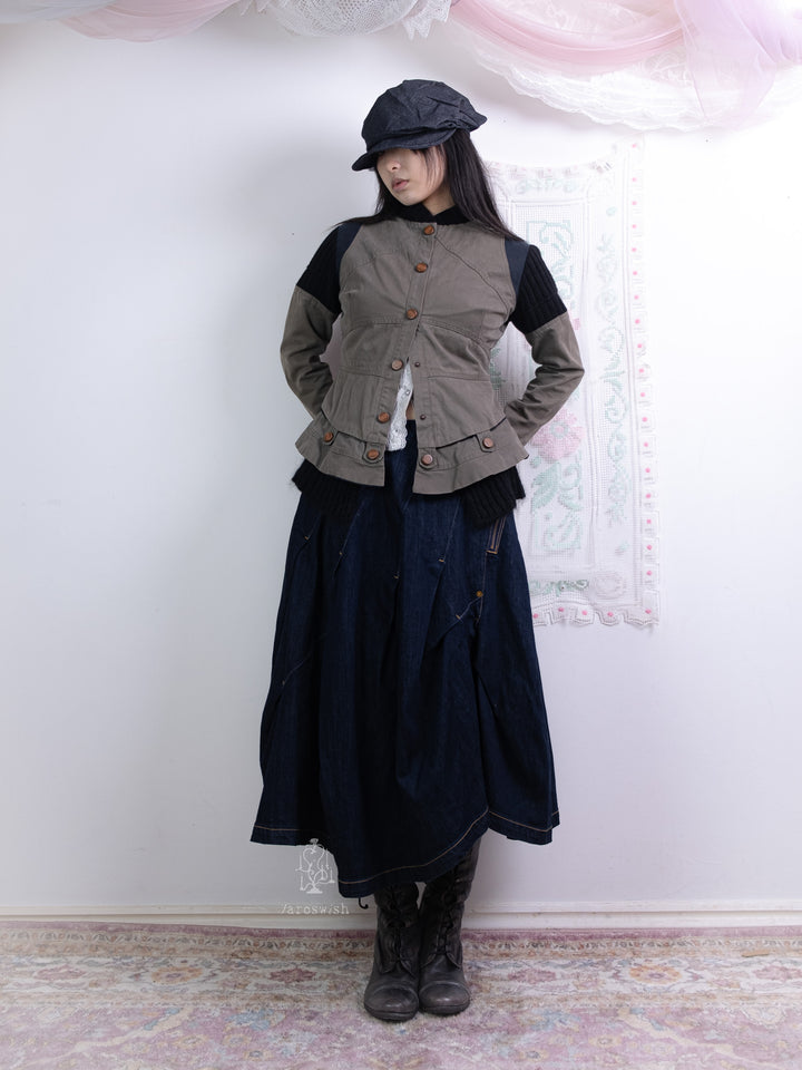 KHAKI MILITARY JACKET WITH KNIT PANEL DETAILS