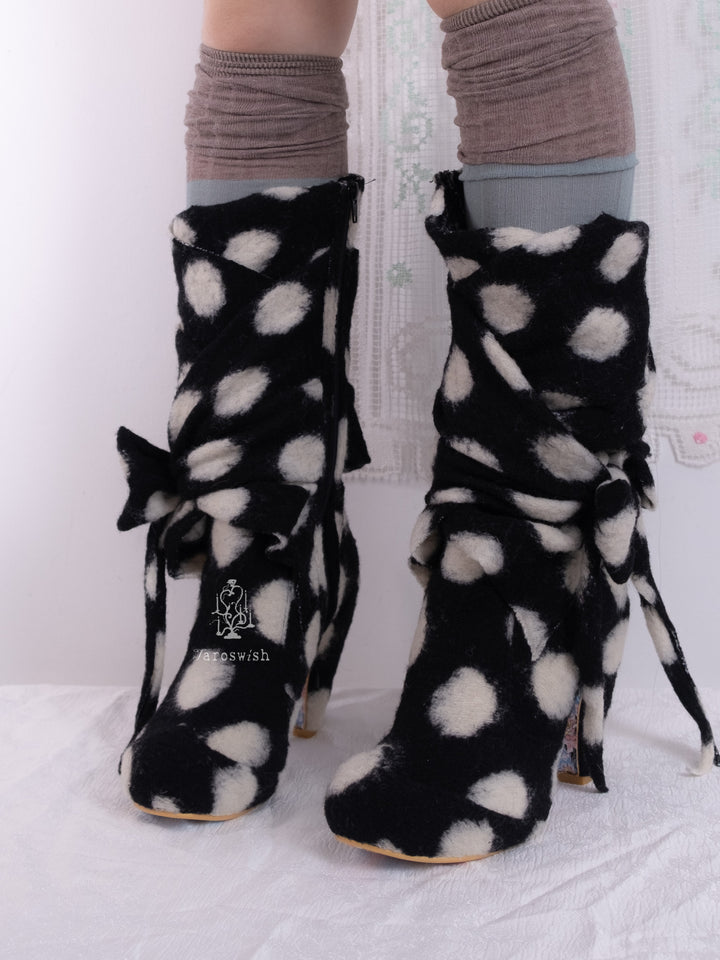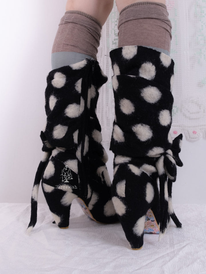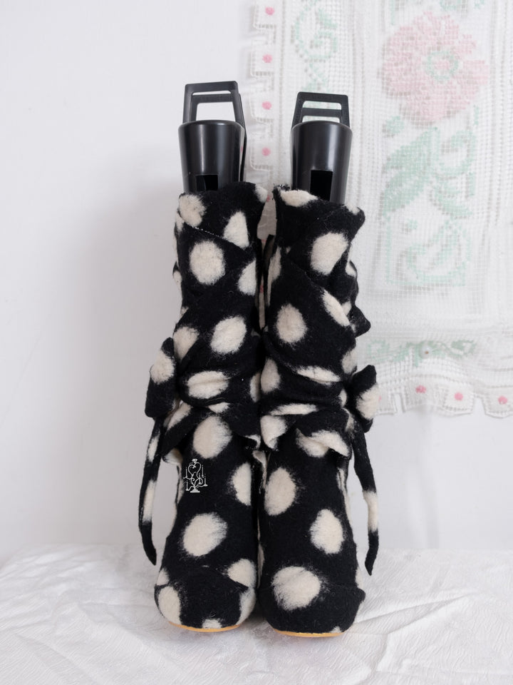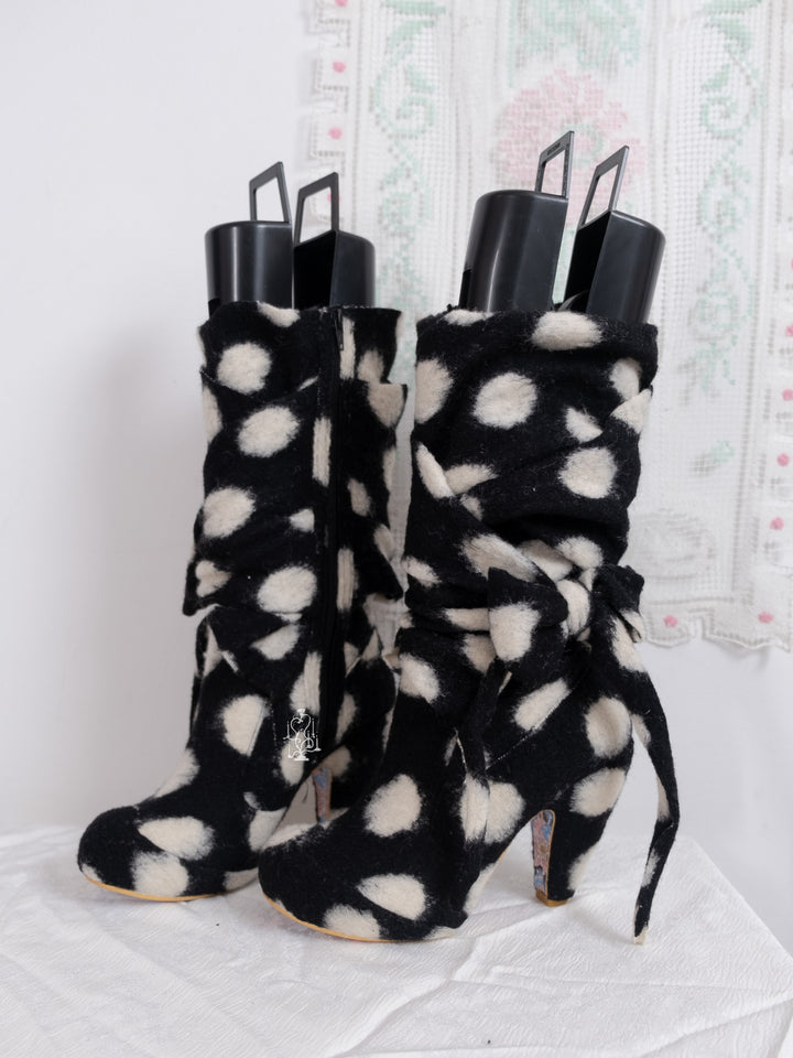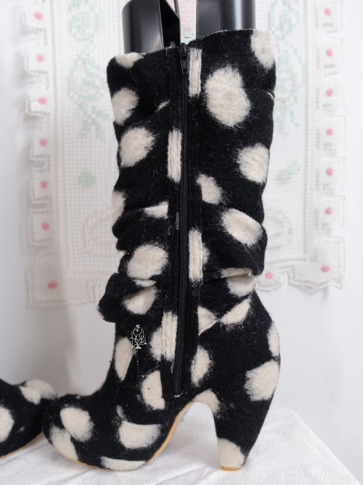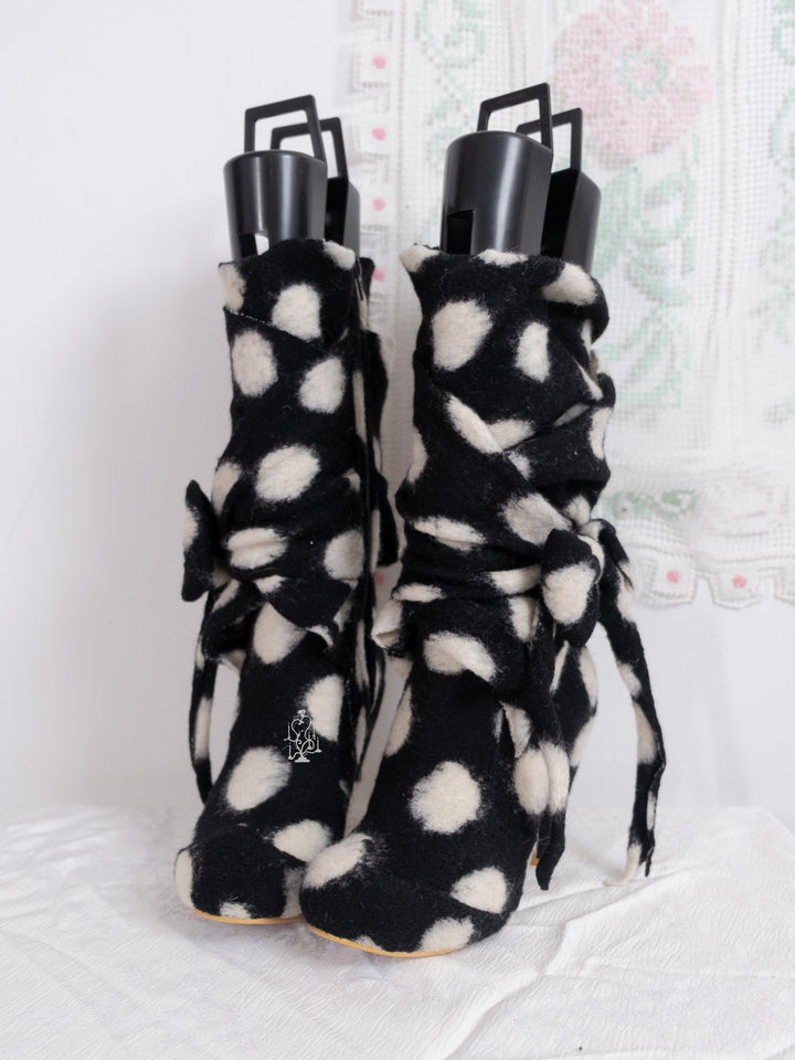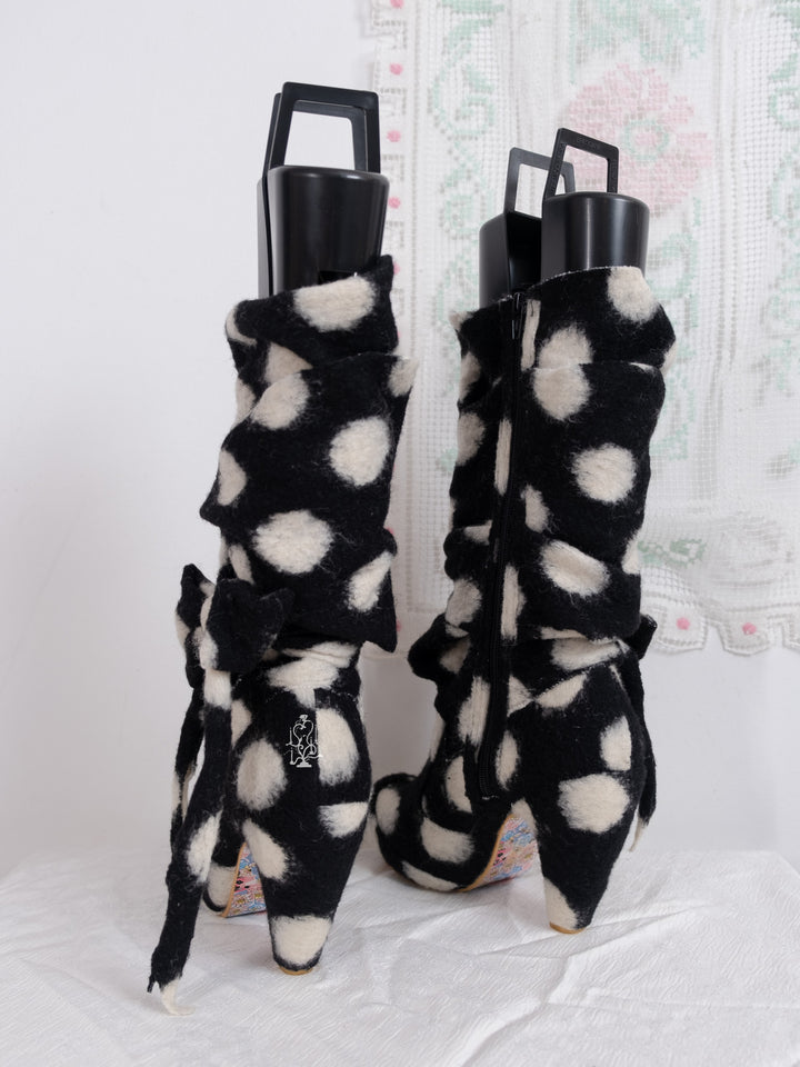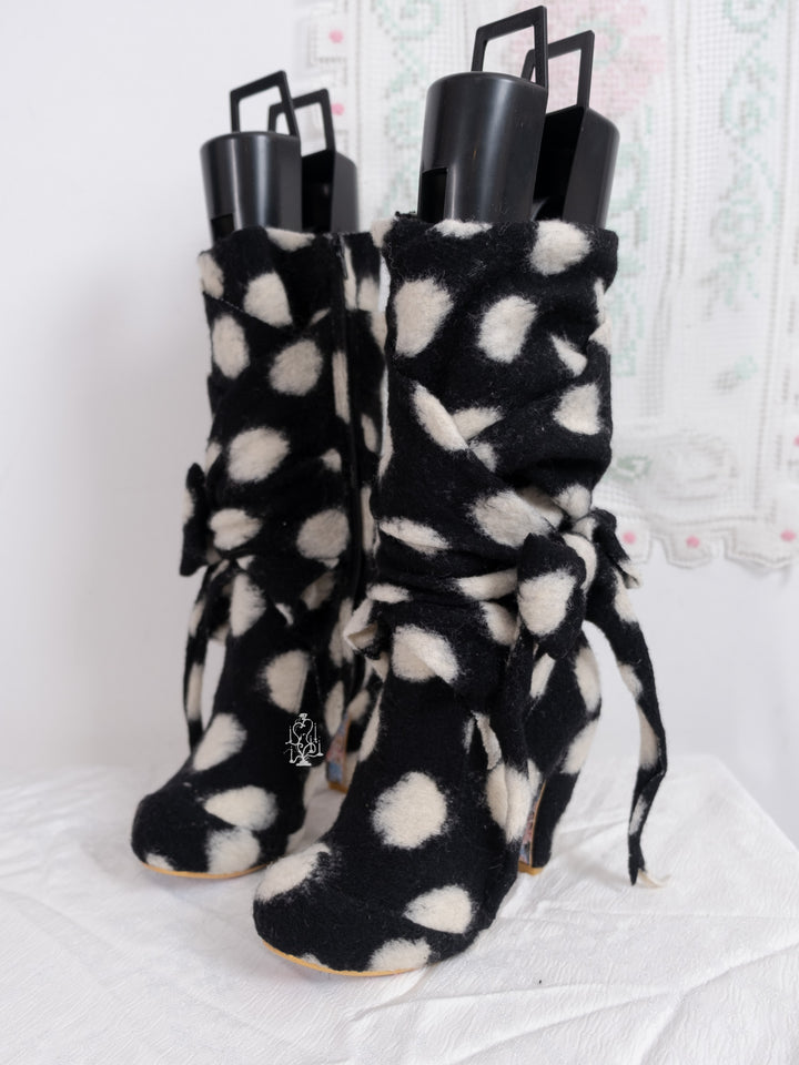 POLKA DOT WOOL PLATFORM BOOTS - EU39 & EU40