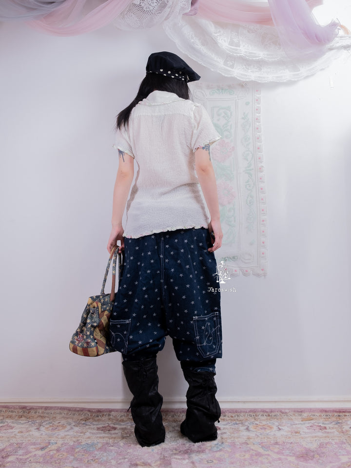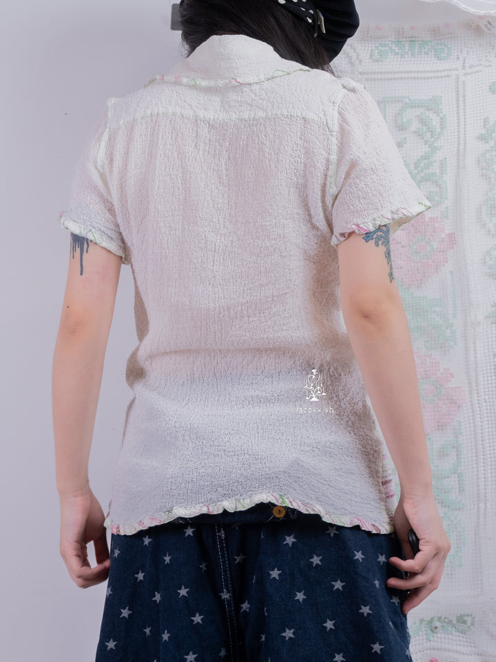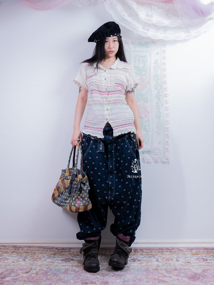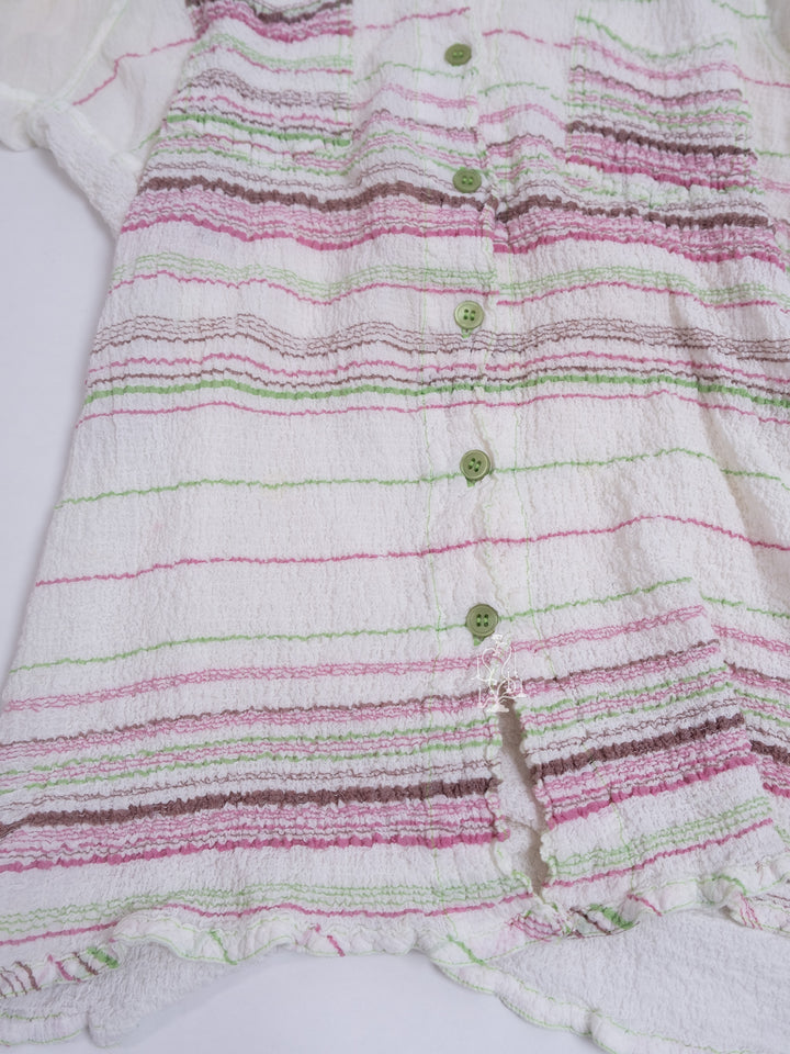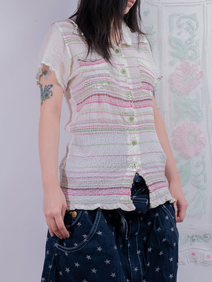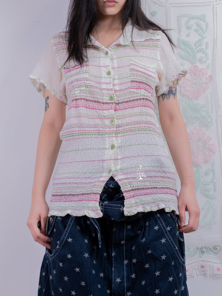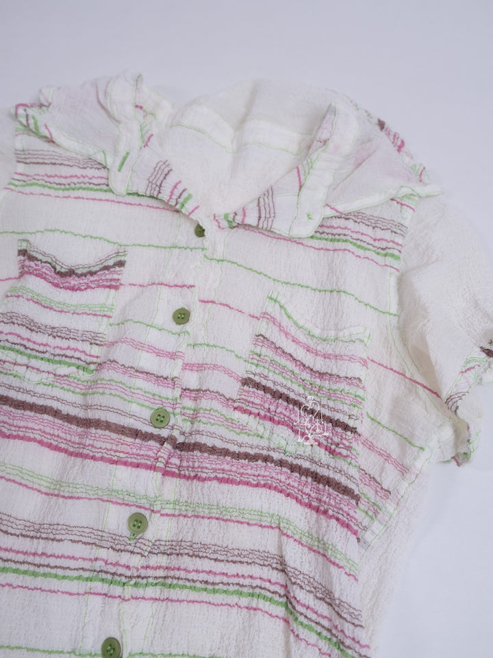 ISSEY MIYAKE ME STRIPED CAULIFLOWER BLOUSE WITH FRILL COLLAR