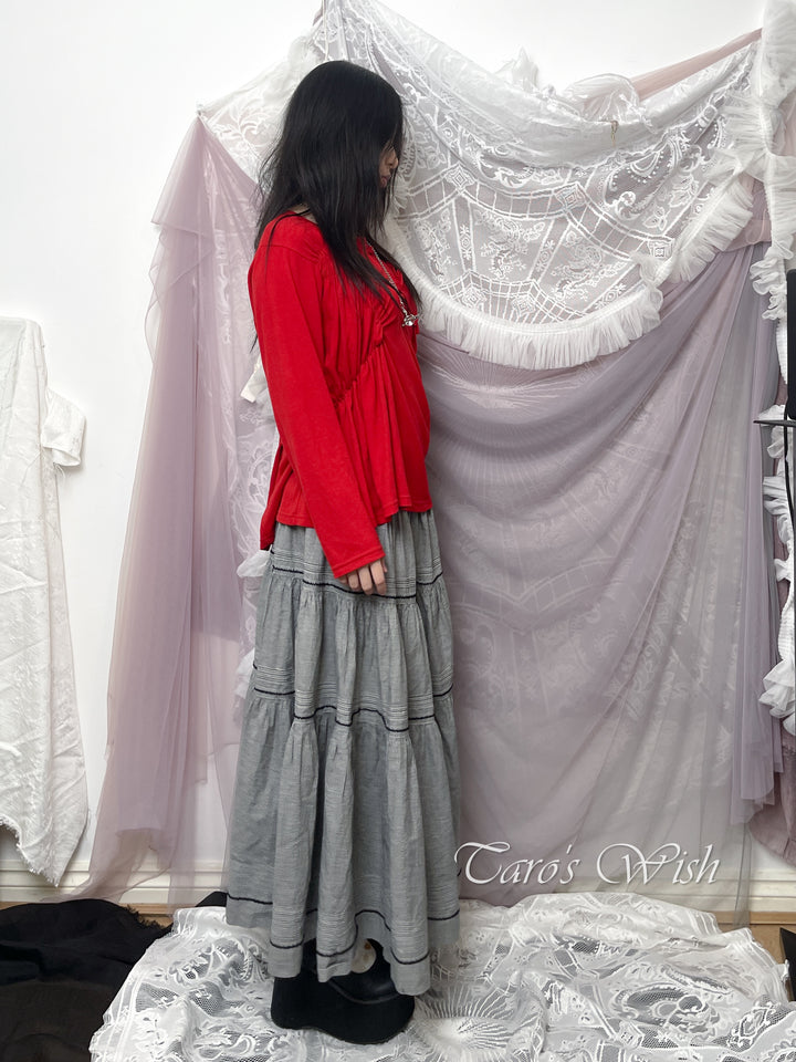I absolutely adore this Gomme piece! It has a soft, velvety texture with plenty of pleat, ruched and irregular designs. It's a bit oversized on me, so I used a clothespin to adjust the fit on the back when I modelling them.