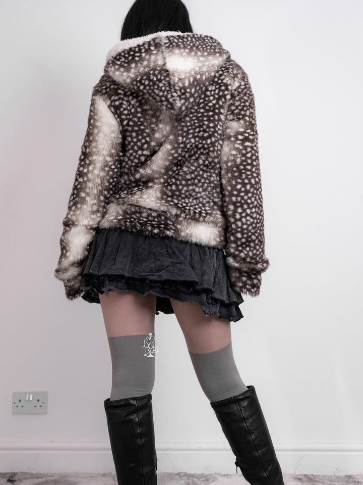 The famous runway piece Dark Grey Tsumori Chisato Coat with bambi pattern and a YKK zipper. Try on pics are from the last coat, please refer the flat lay as final patterns.