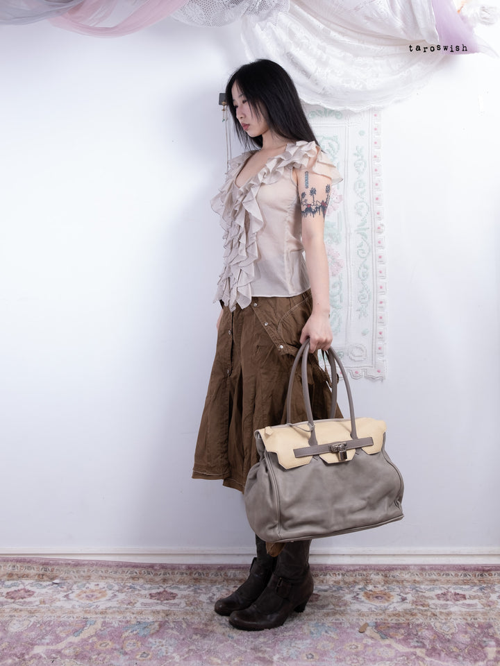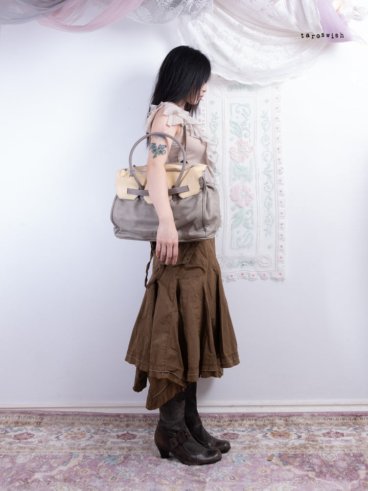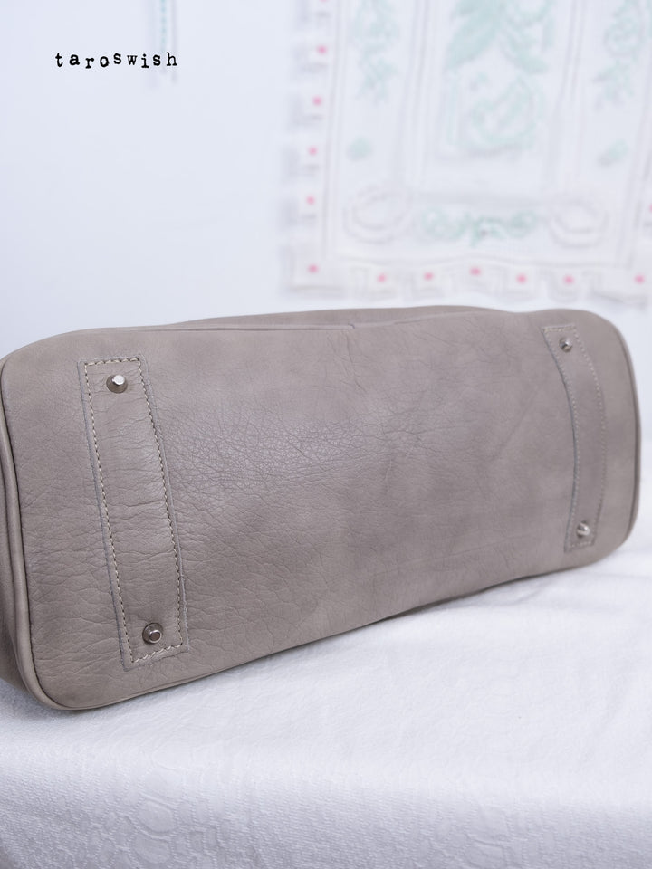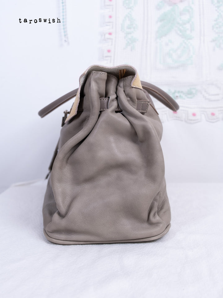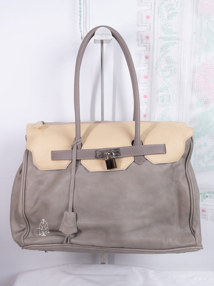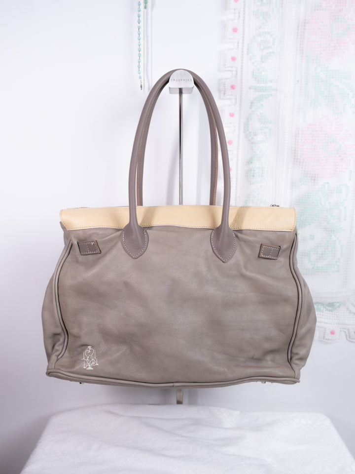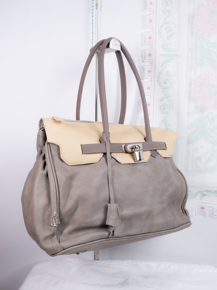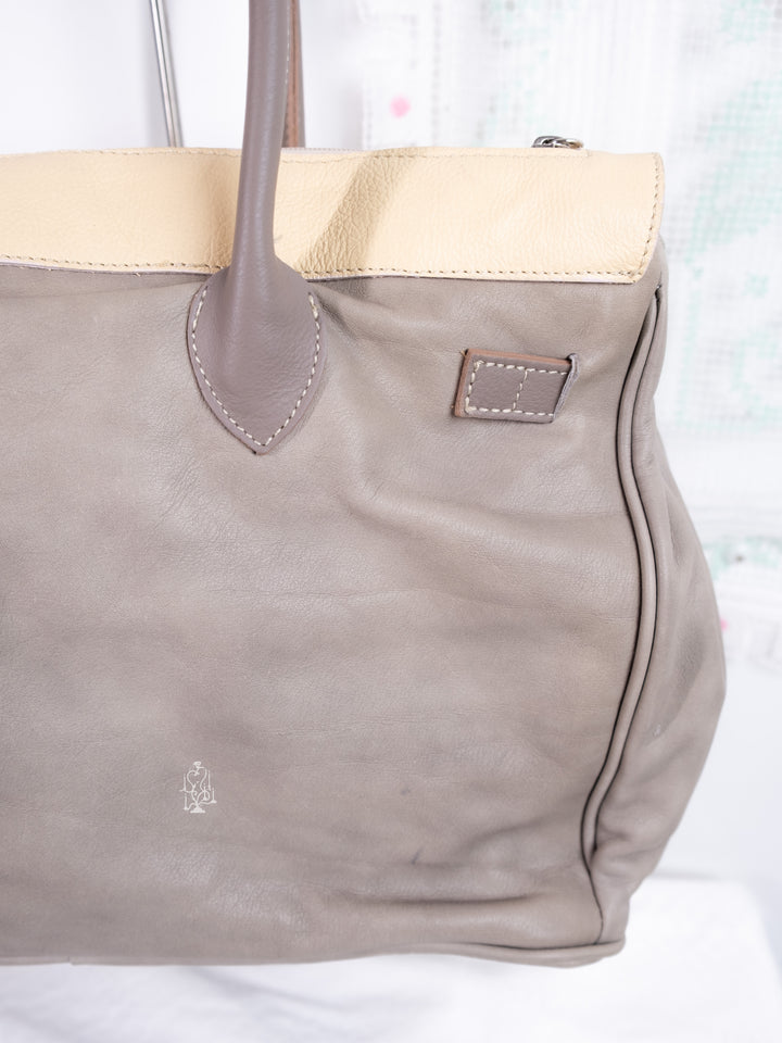 TWO-TONE GREY STRUCTURED REAL LEATHER TOTE