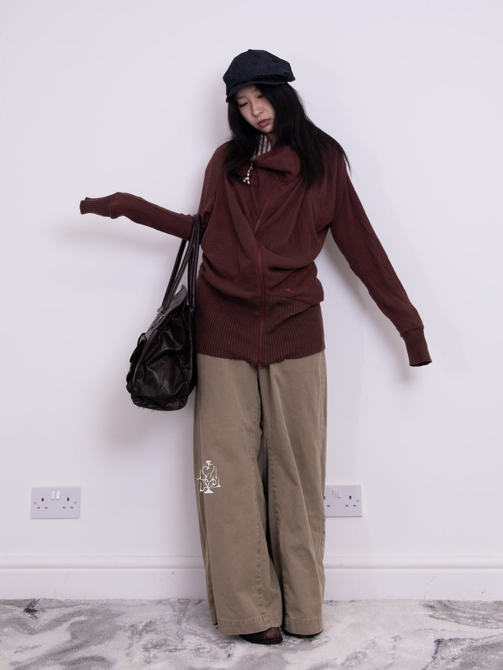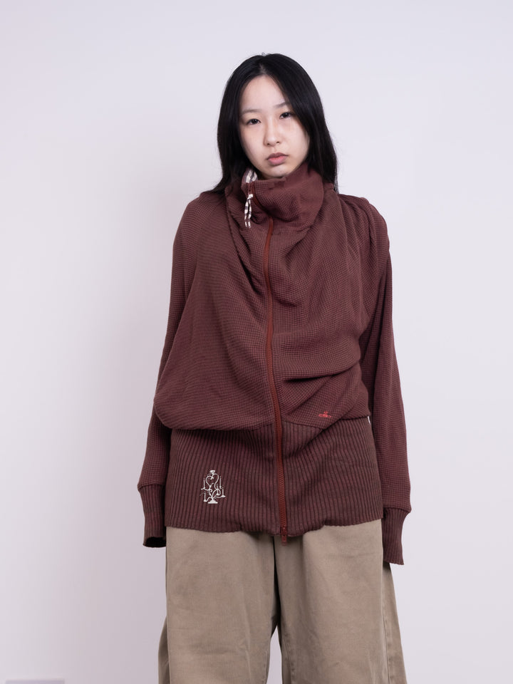 VIVIENNE WESTWOOD BURGUNDY ZIP-UP HOODED TOP