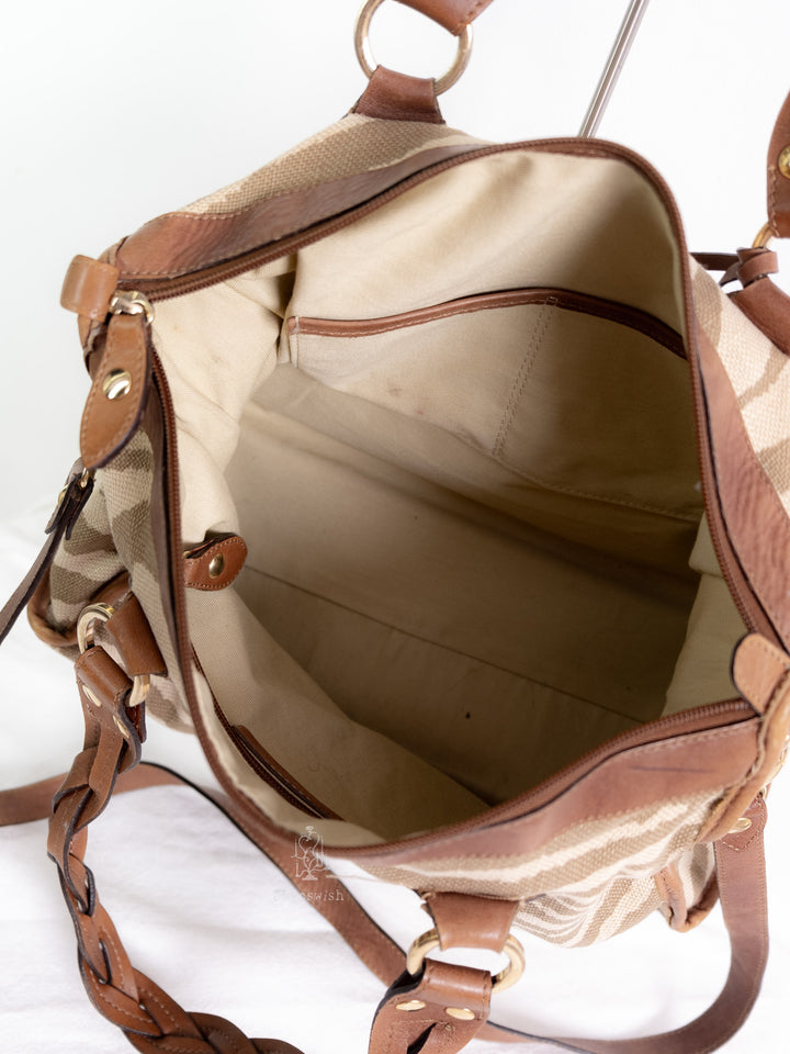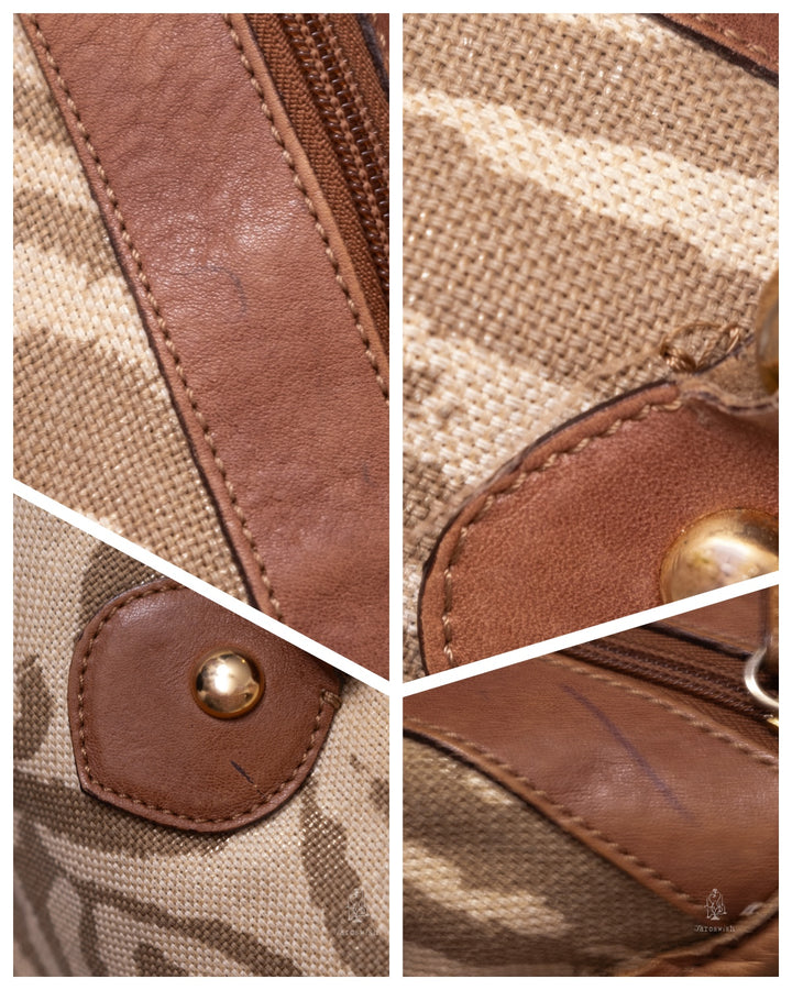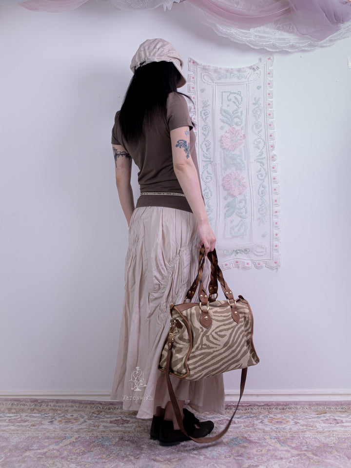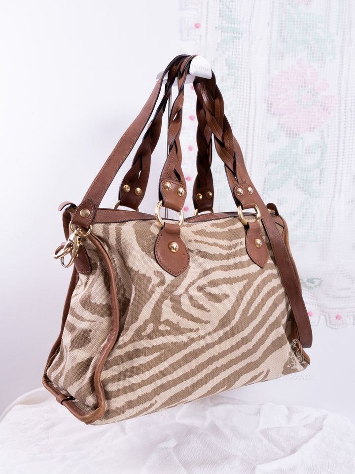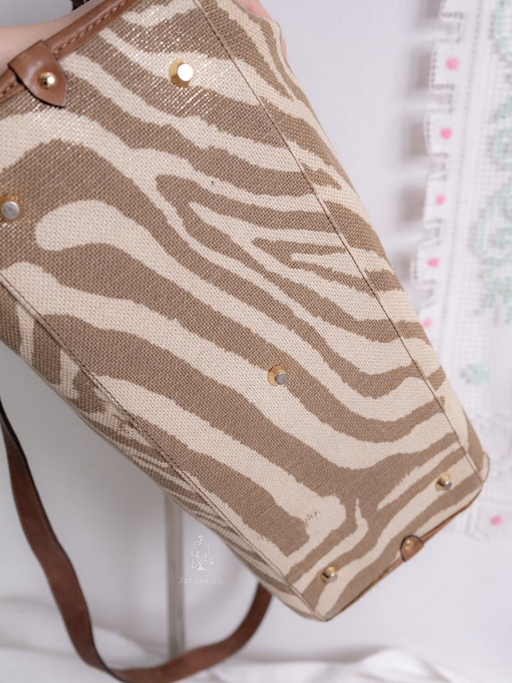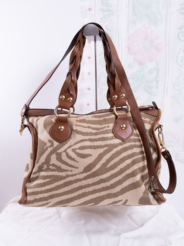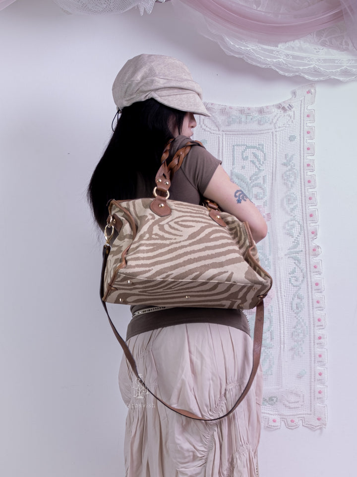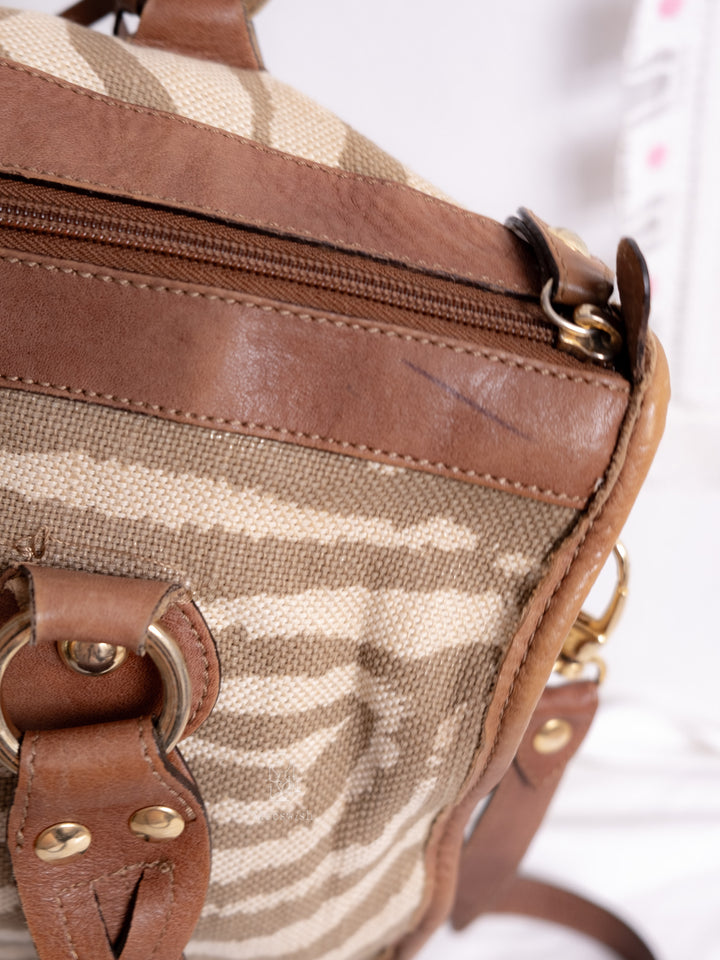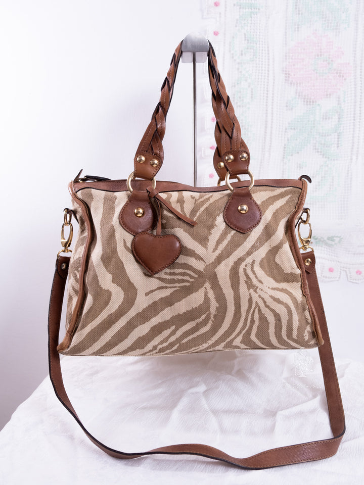 ROBERTA GANDOLFI ZEBRA PRINT CANVAS & LEATHER HEART CHARM BAG