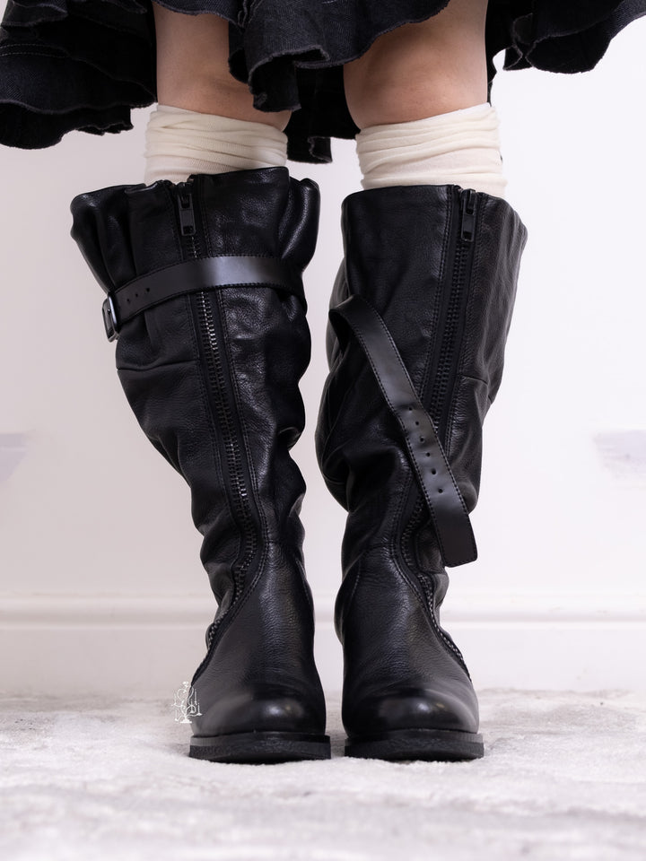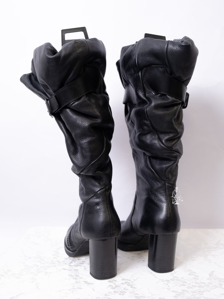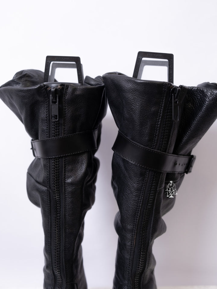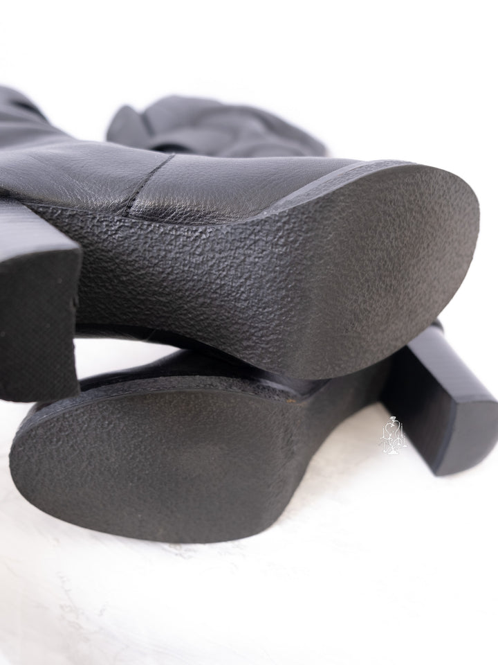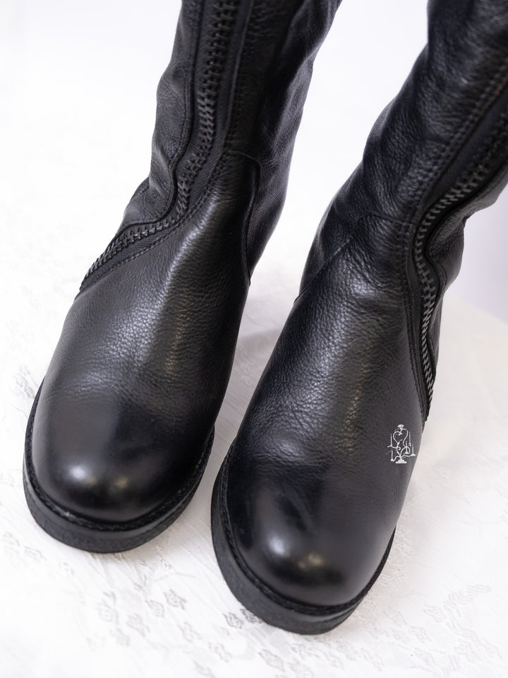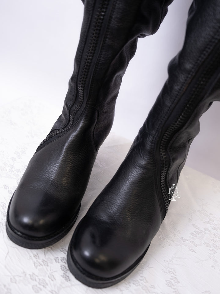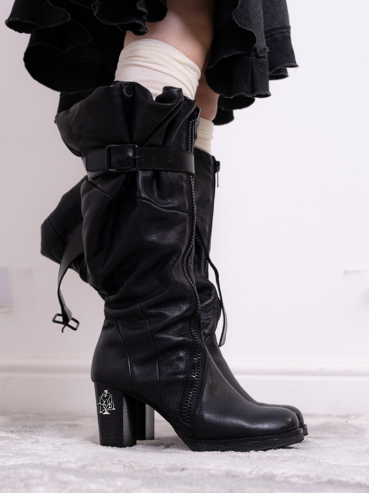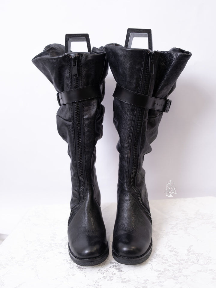 ZUCCA FW2009 BLACK LEATHER KNEE-HIGH ZIP SLANT BOOTS - SIZE M