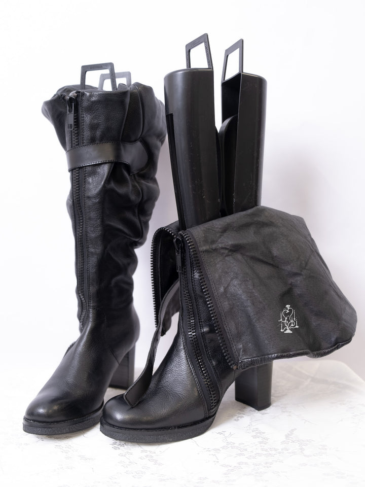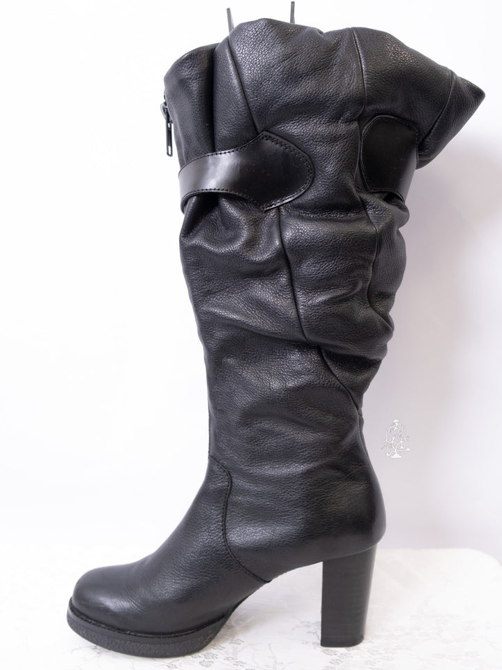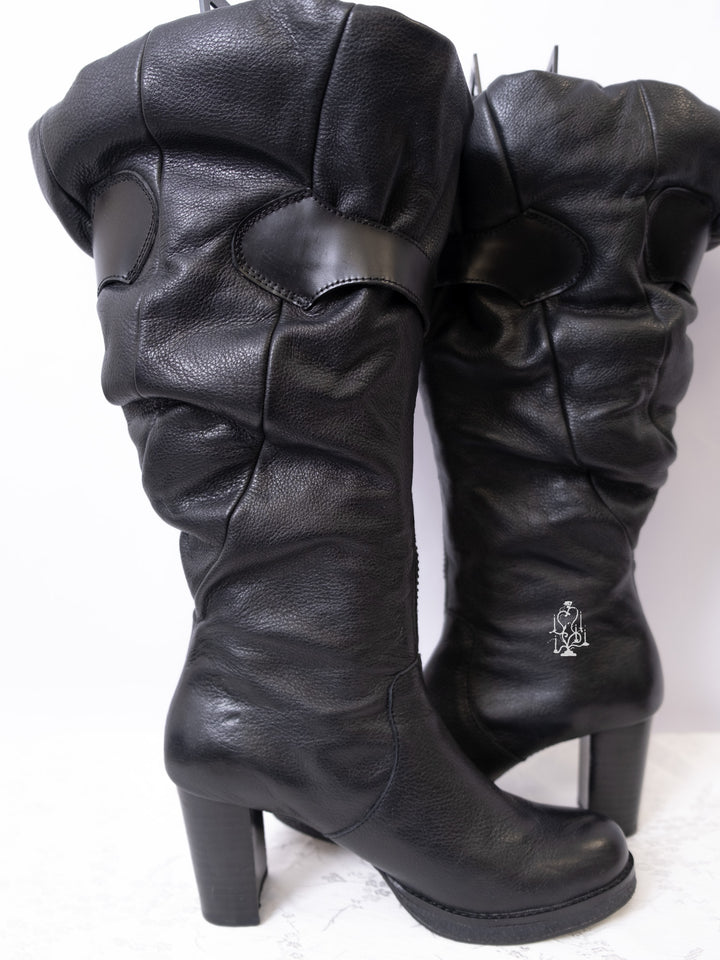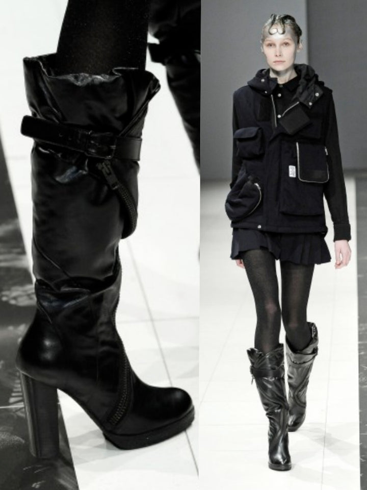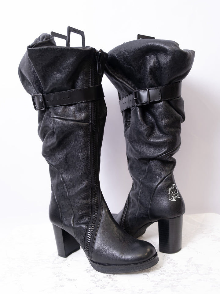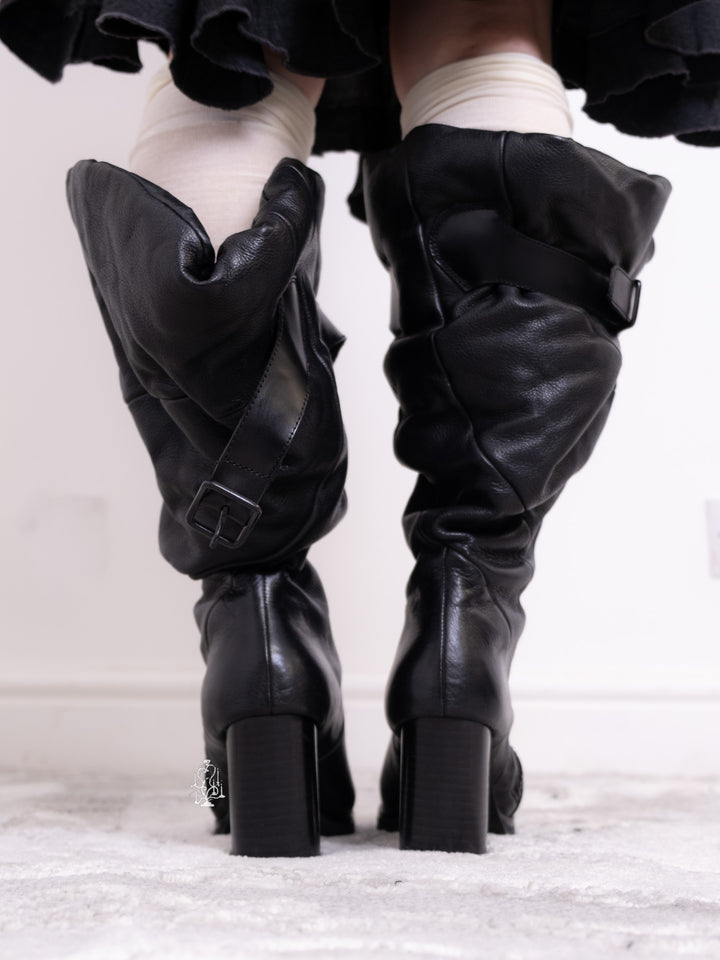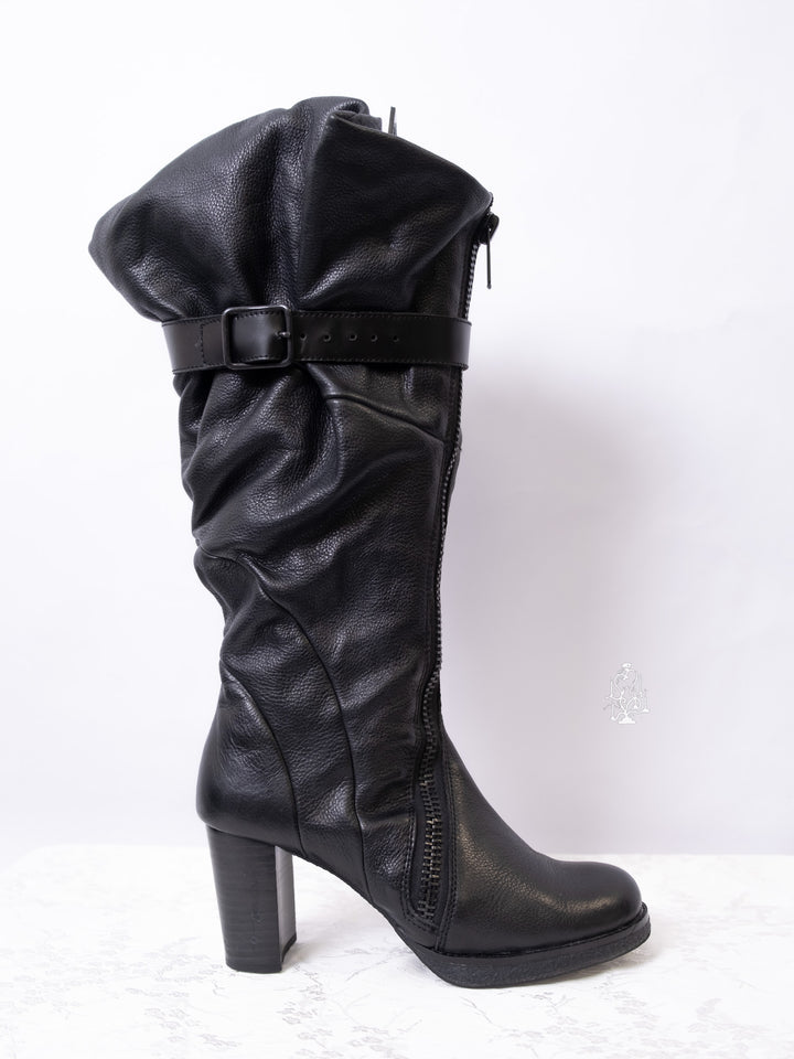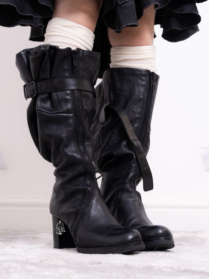 ZUCCA FW2009 BLACK LEATHER KNEE-HIGH ZIP SLANT BOOTS - SIZE M