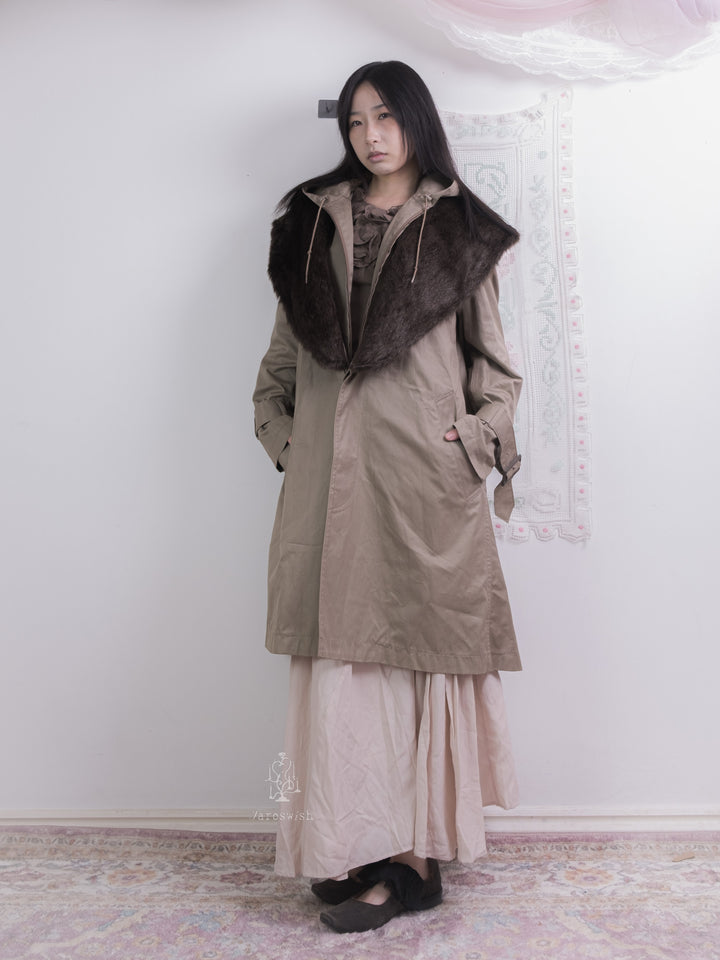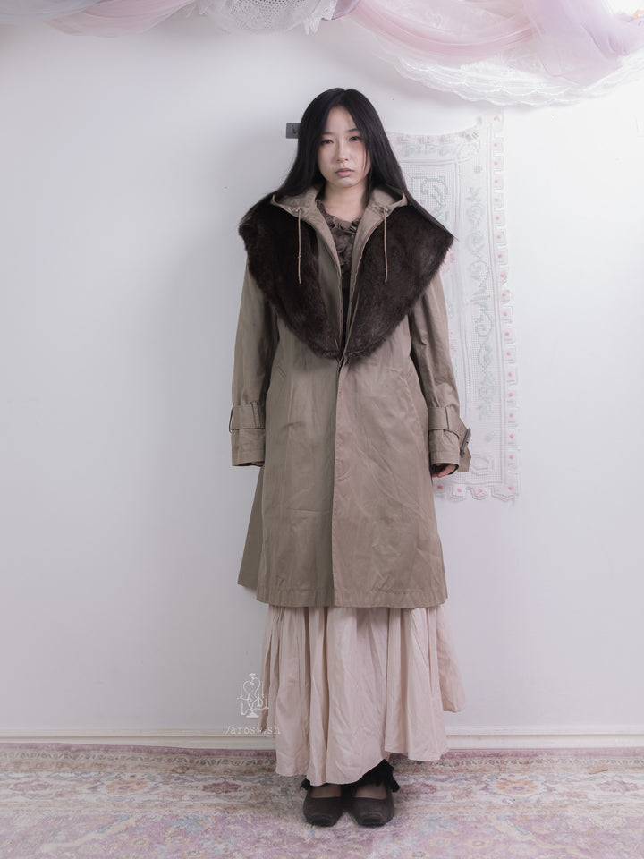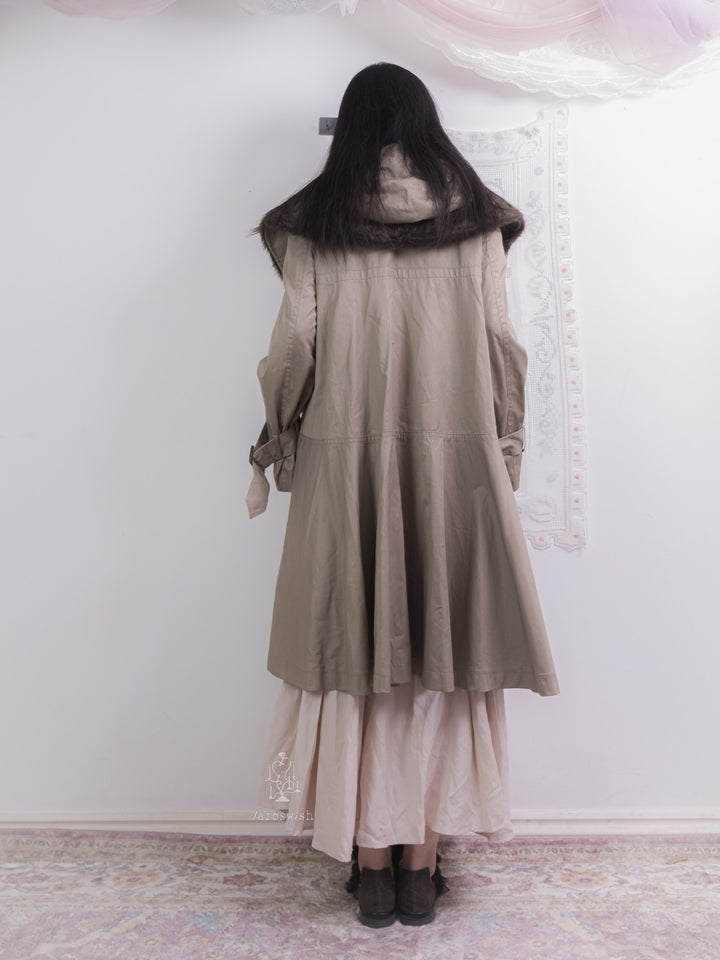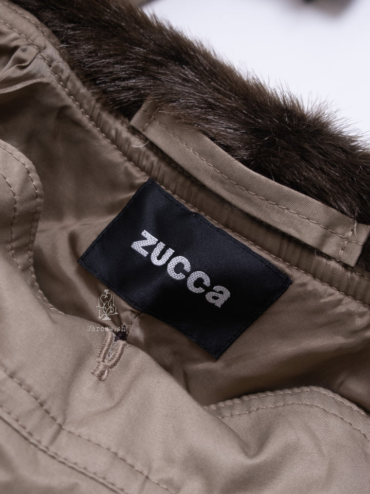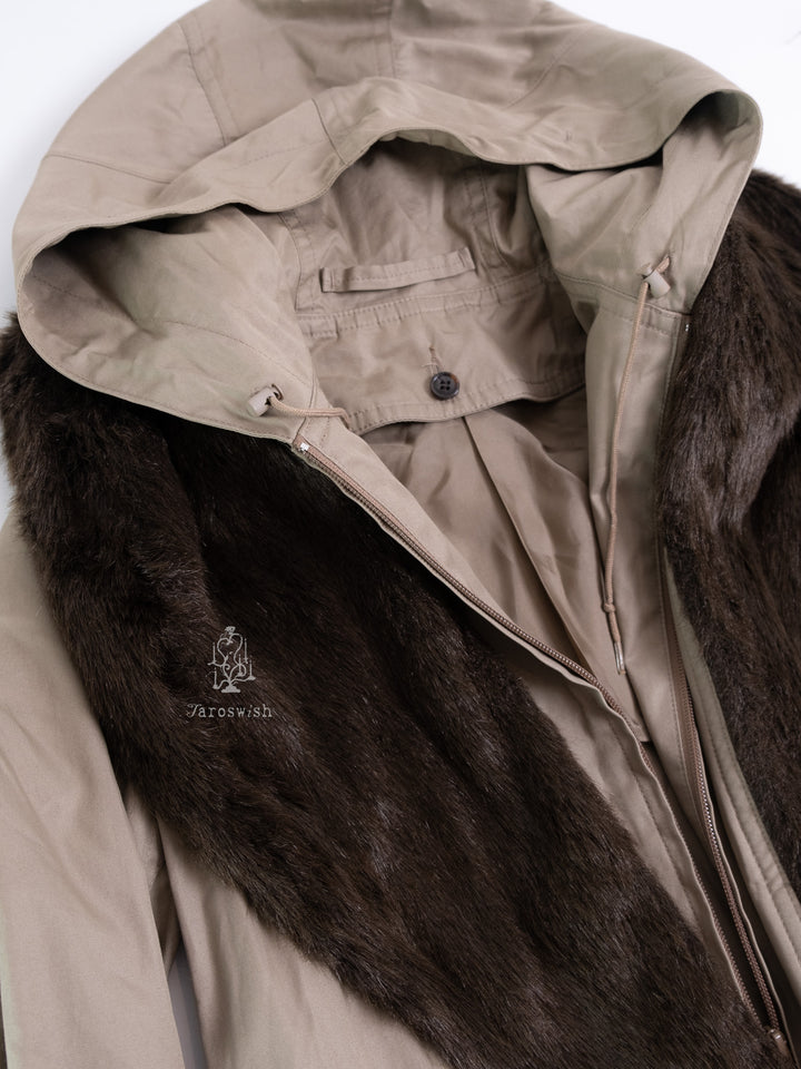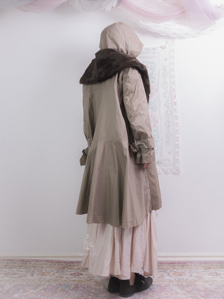 ZUCCA KHAKI HOODED COAT WITH FAUX FUR COLLAR