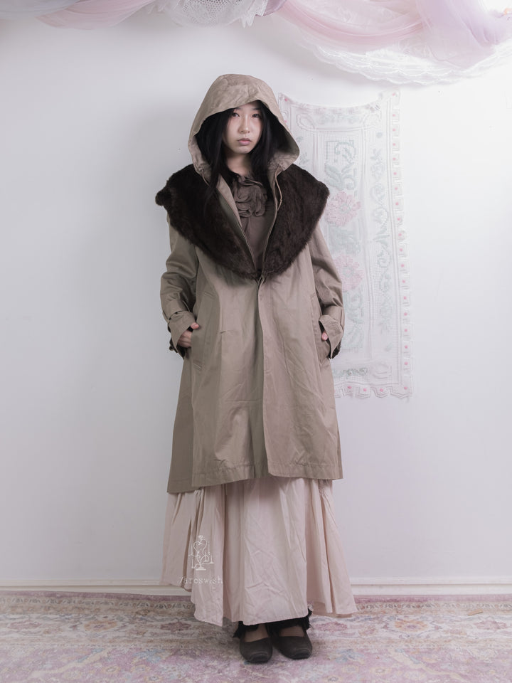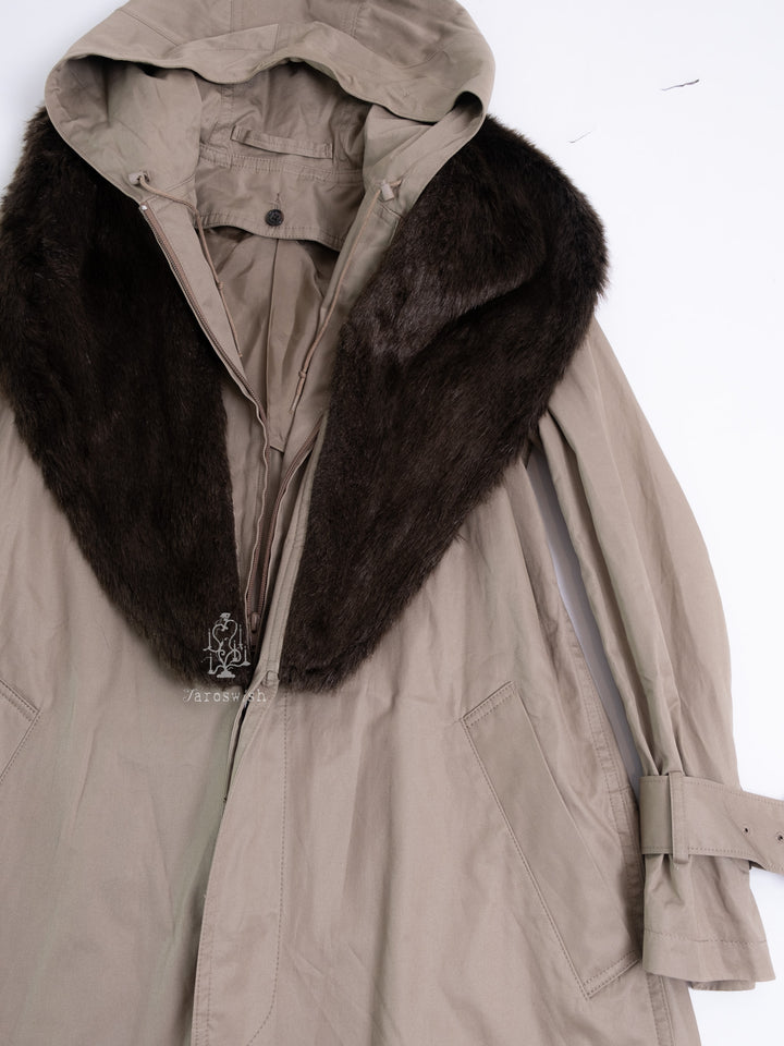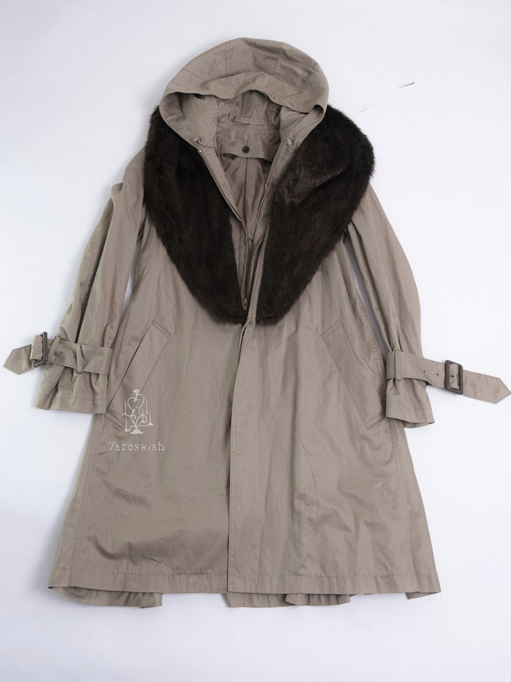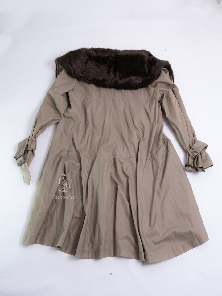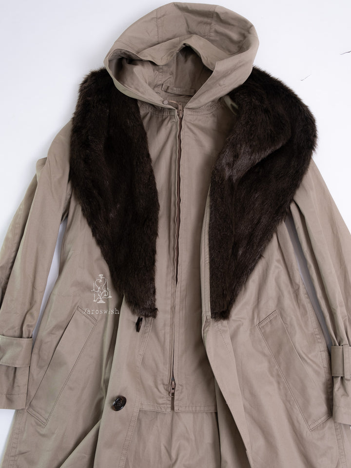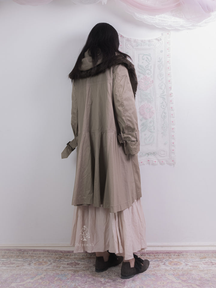 ZUCCA KHAKI HOODED COAT WITH FAUX FUR COLLAR