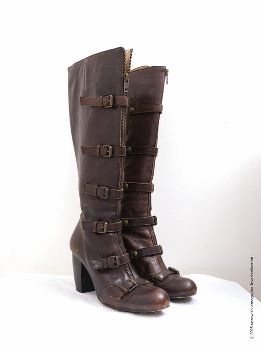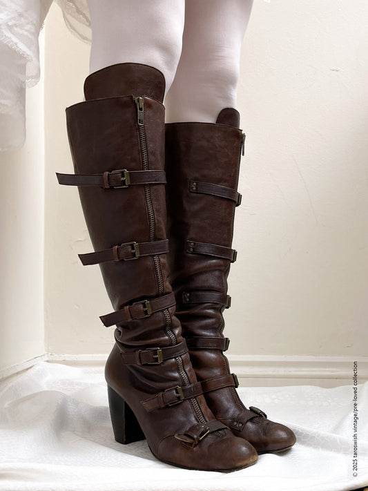 SZIE M ZUCCA BROWN FOLDOVER KNEE-HIGH BOOTS