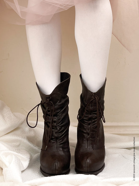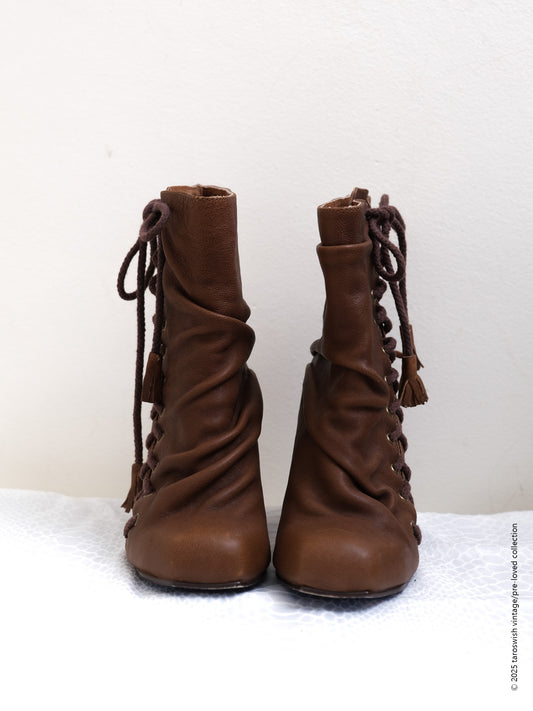 EU38 BROWN SUEDE LACE-UP HIGH-HEEL BOOTS