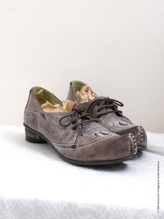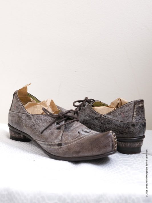 EU37 GREY DISTRESSED BUCKLE COMBAT BOOTS