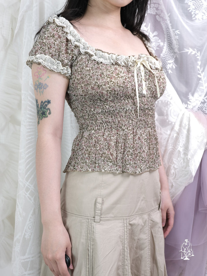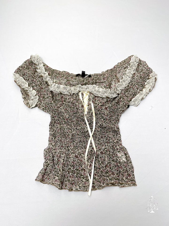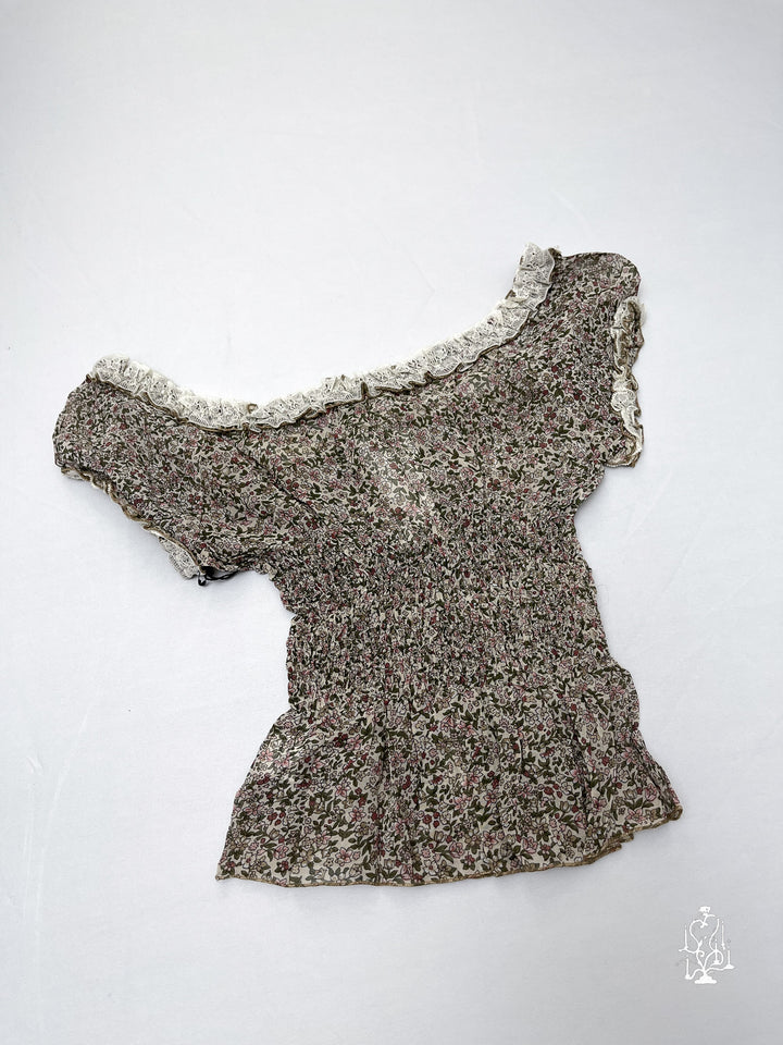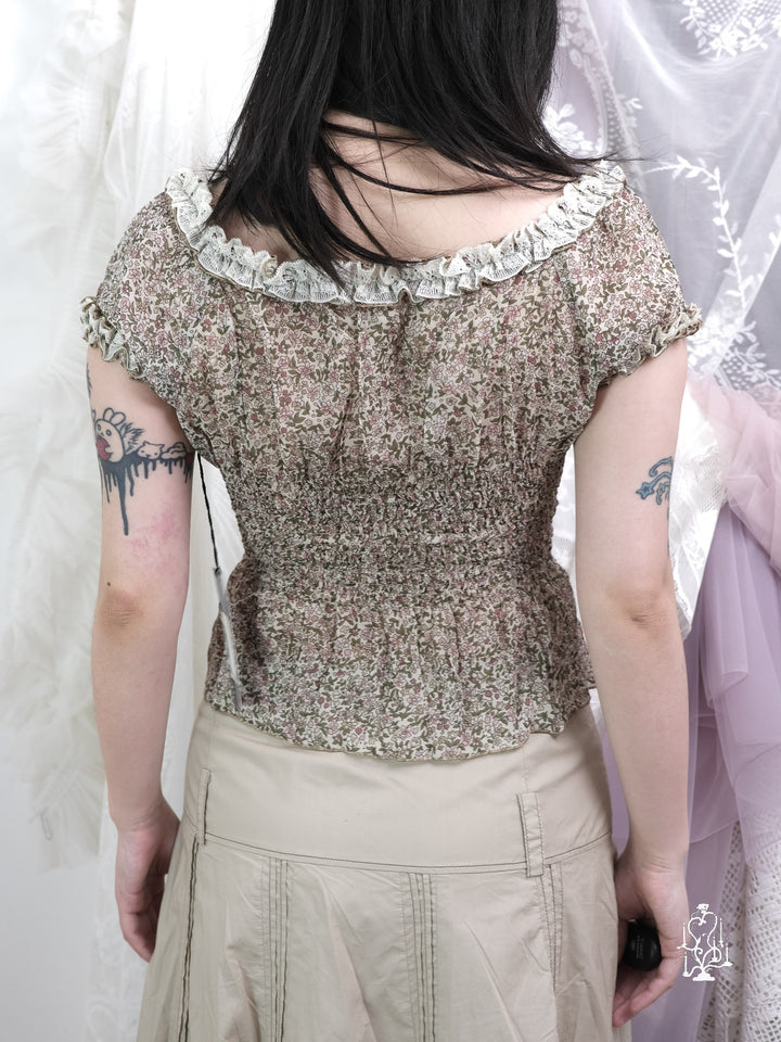SMOCKED FLORAL OFF-SHOULDER TOP
