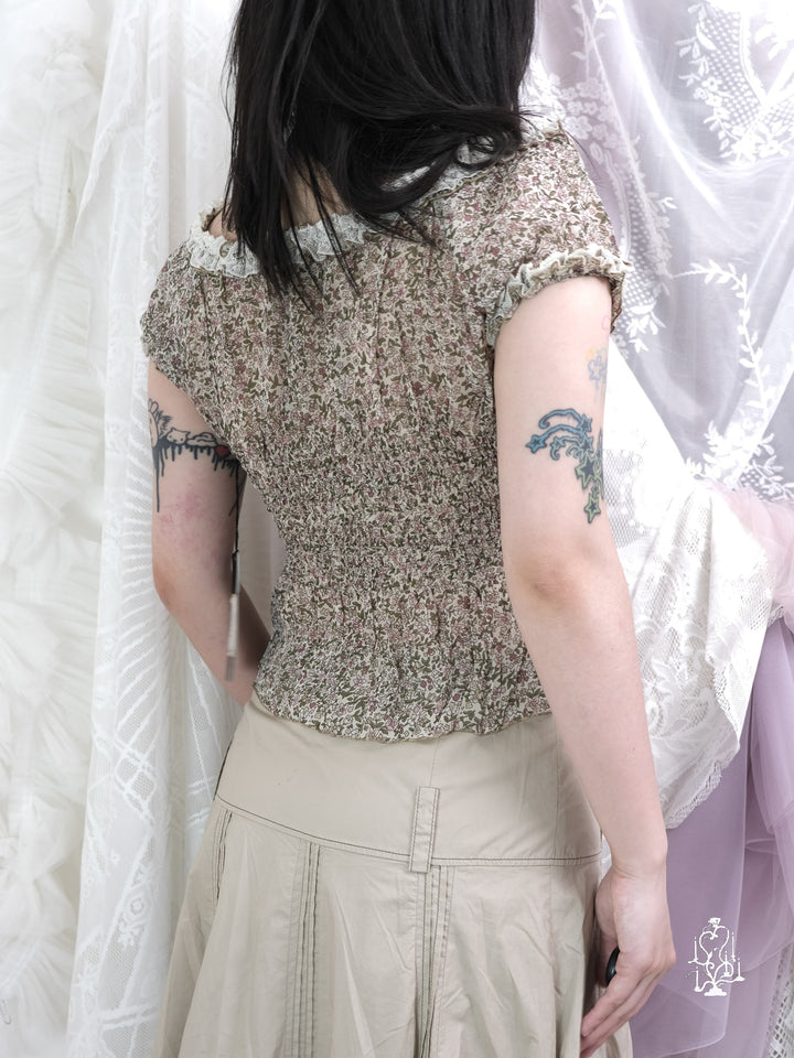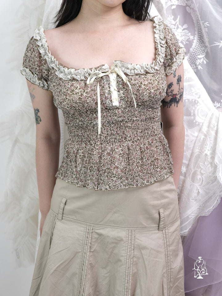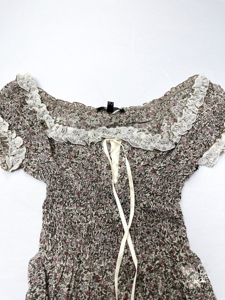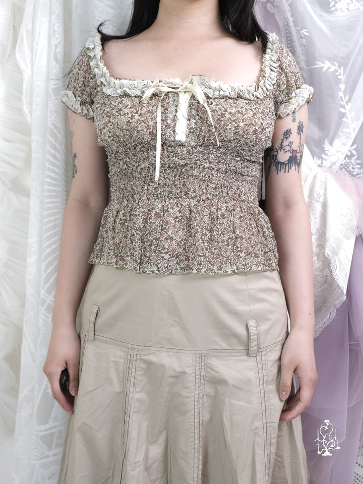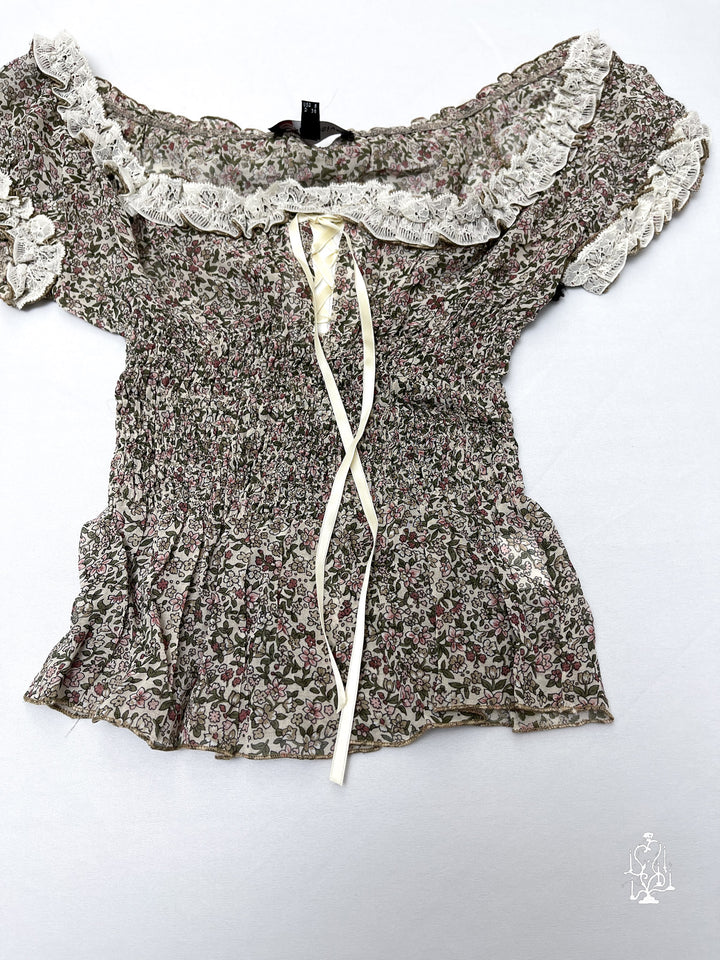 SMOCKED FLORAL OFF-SHOULDER TOP