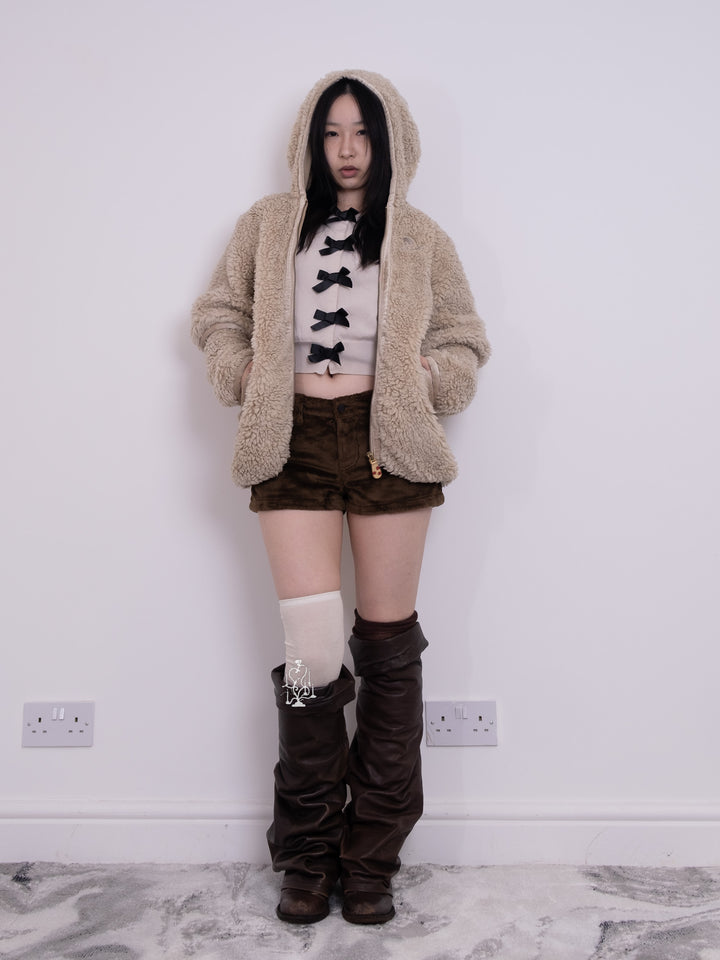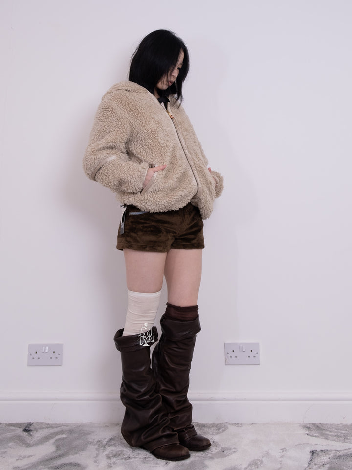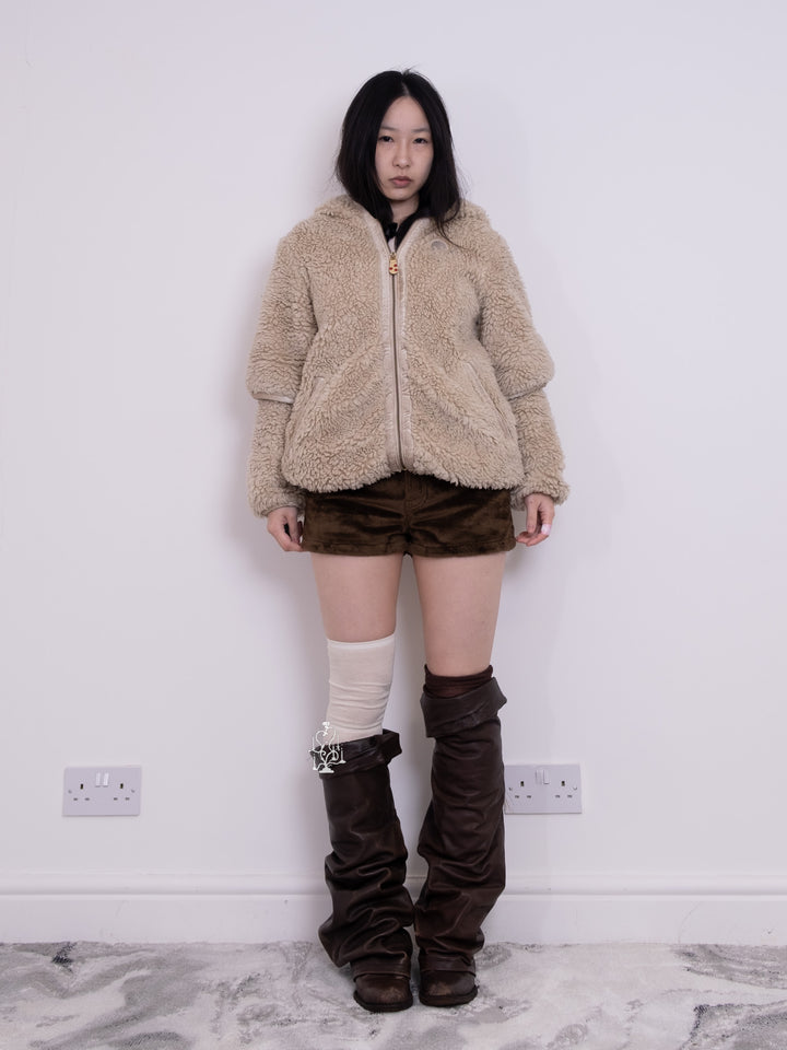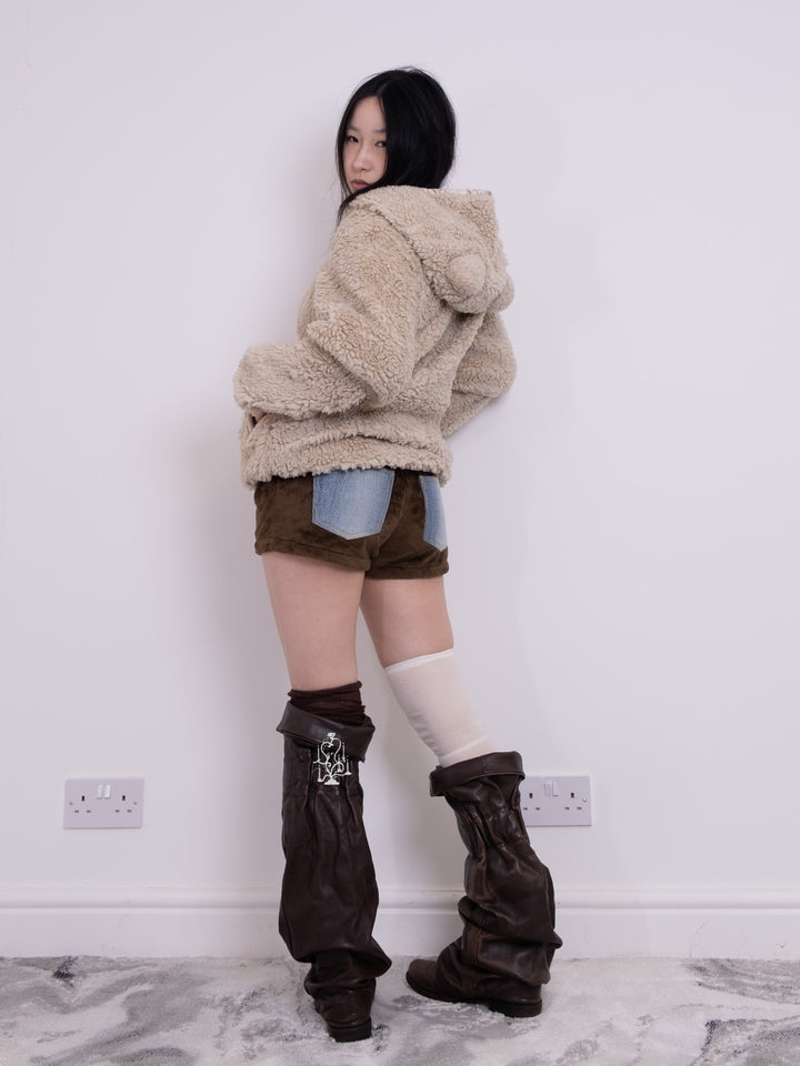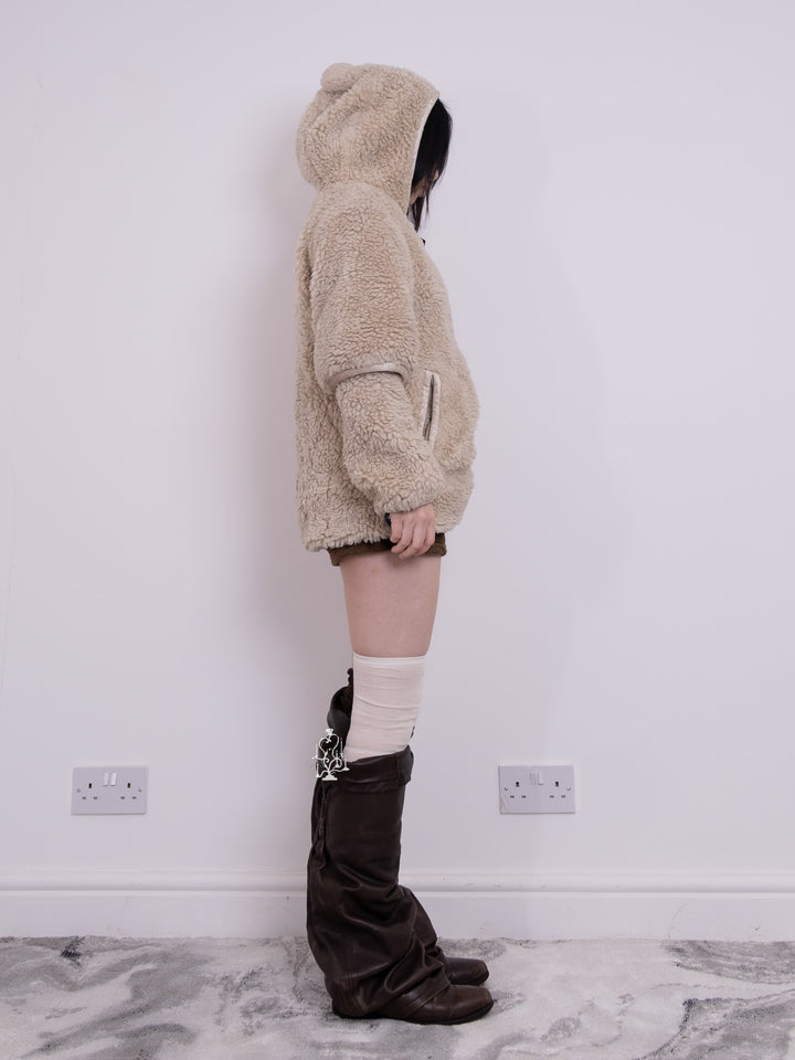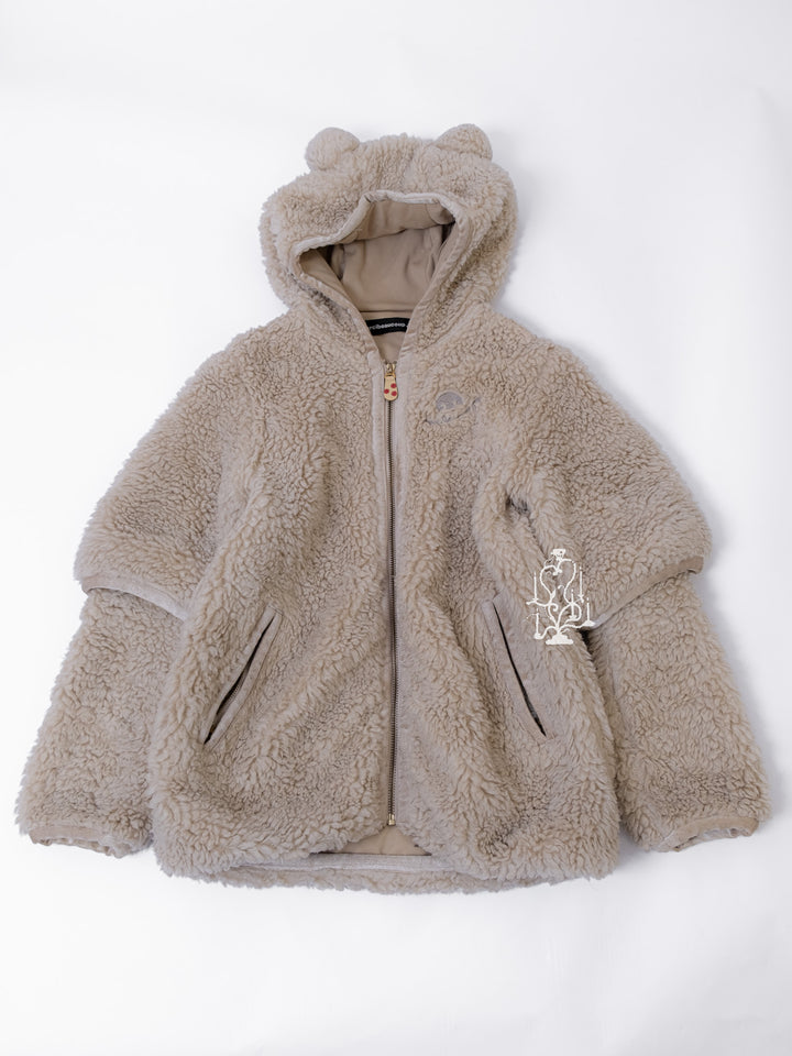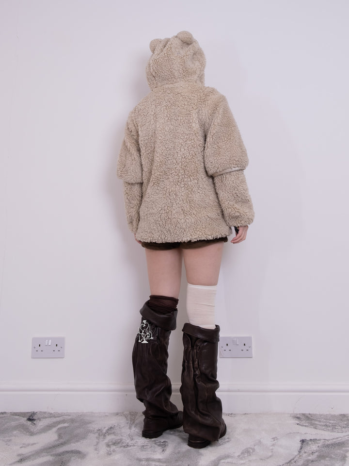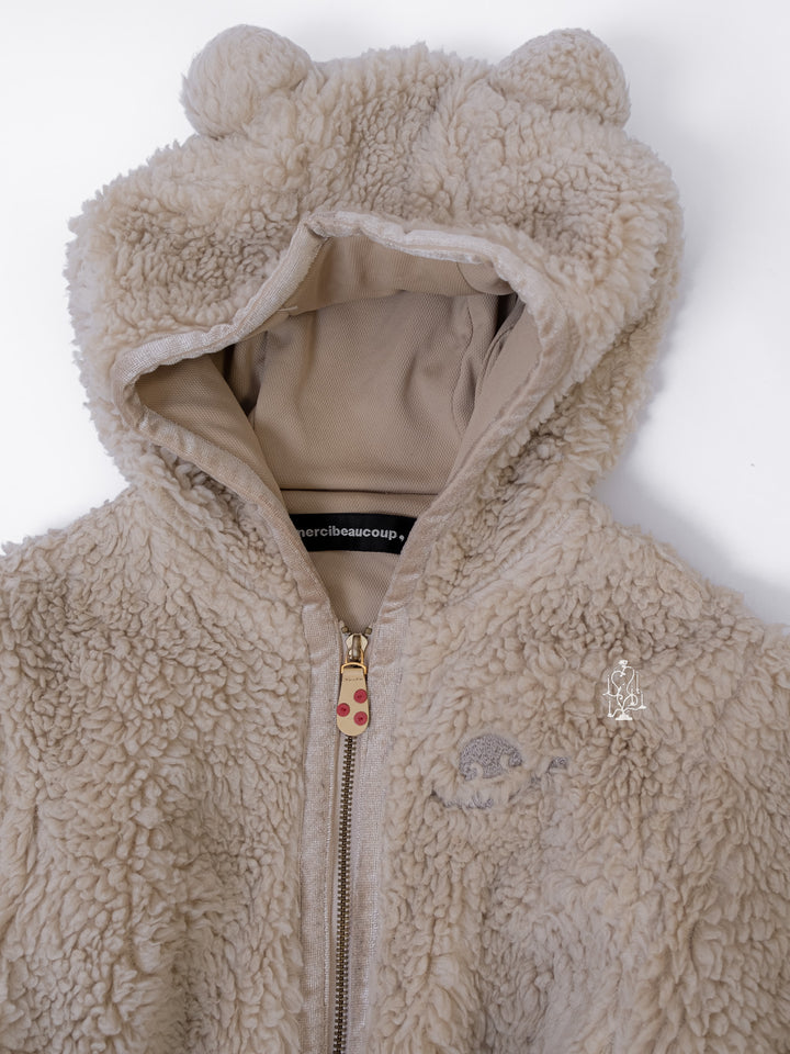 MERCI BEAUCOUP TAUPE TEDDY HOODIE WITH BEAR EARS